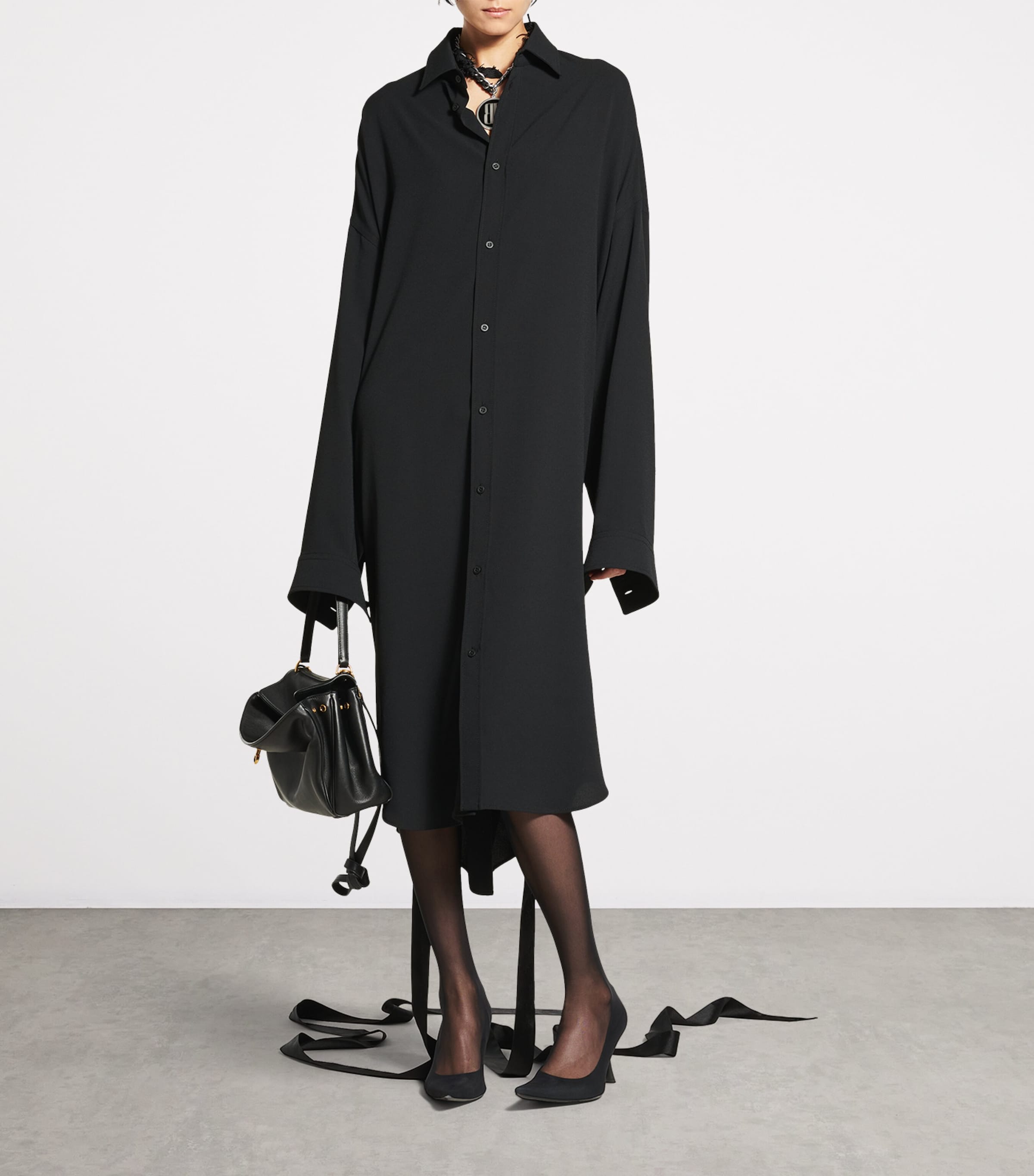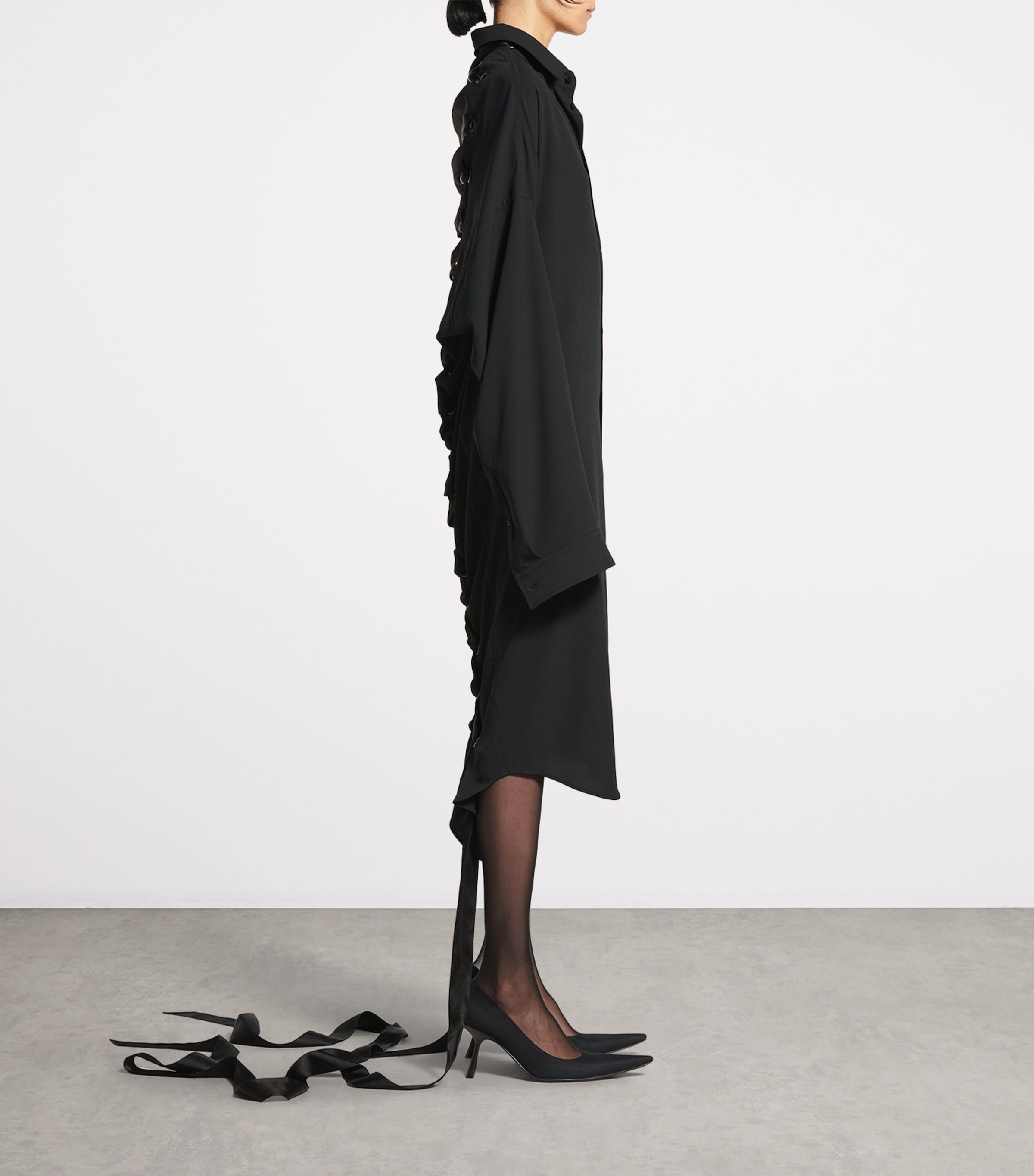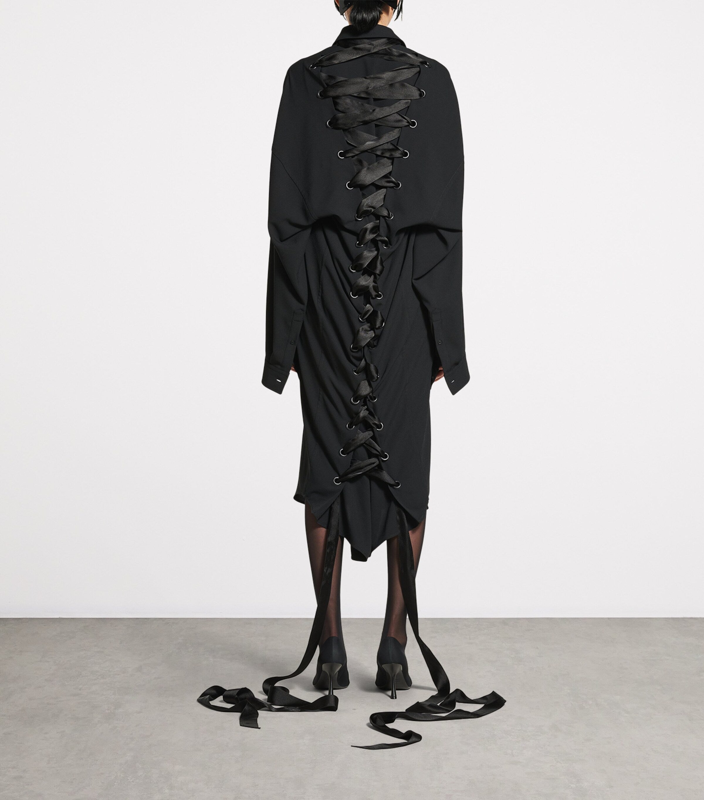 Balenciaga Black Lace-Up Shirt Dress