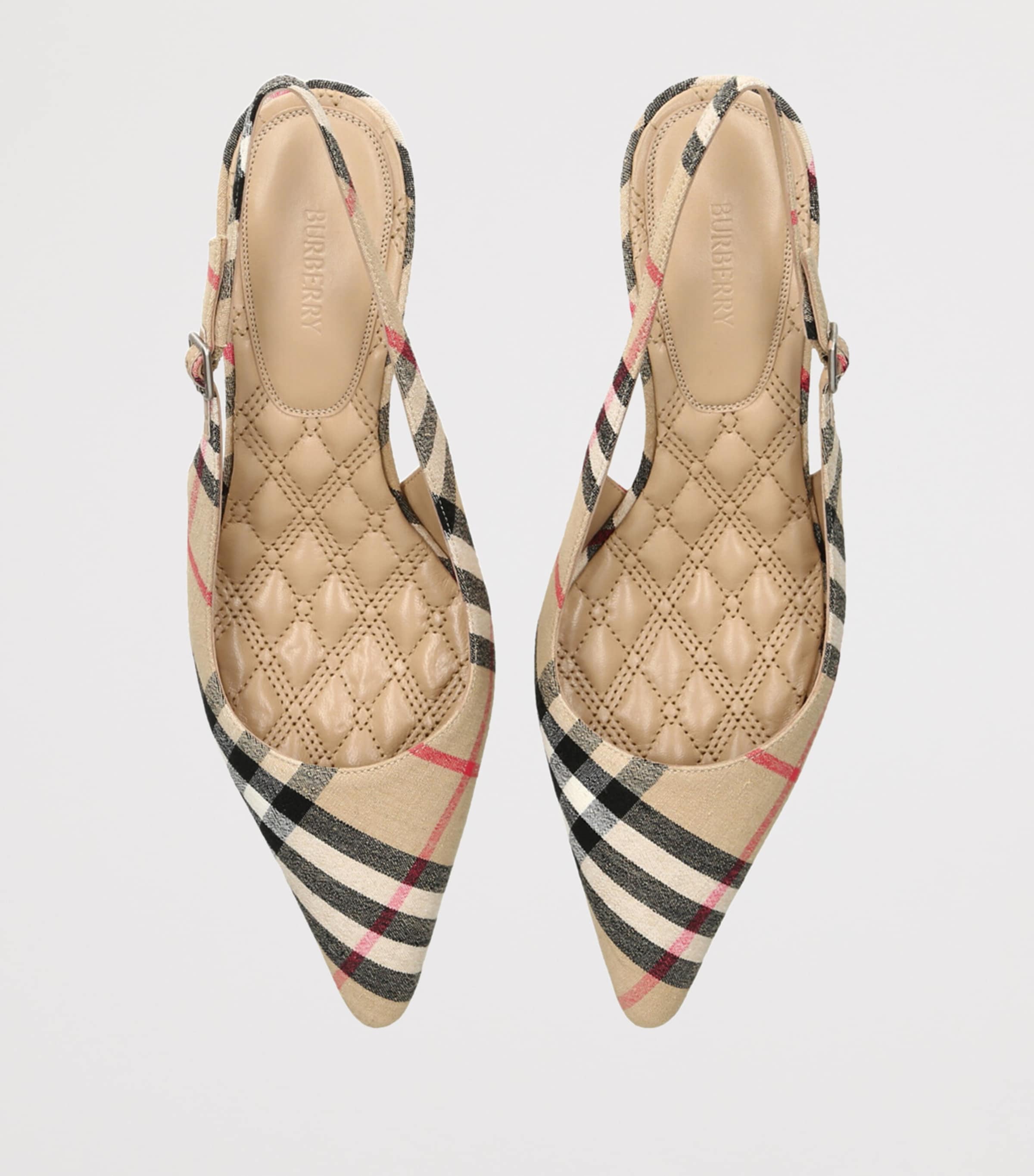 A contemporary expression of Burberry’s storied aesthetic, these Italian-made slingbacks pair archival house codes with a modern silhouette. Woven with the iconic check in a metallic cotton blend, they’re set on a low kitten heel and finished with a gleaming 'B' buckle, while quilted leather insoles ensure day-to-night comfort.