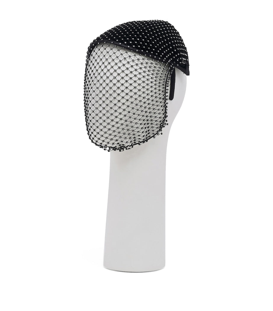 Black Embellished Mesh Fascinator Hat - 1033 / OS