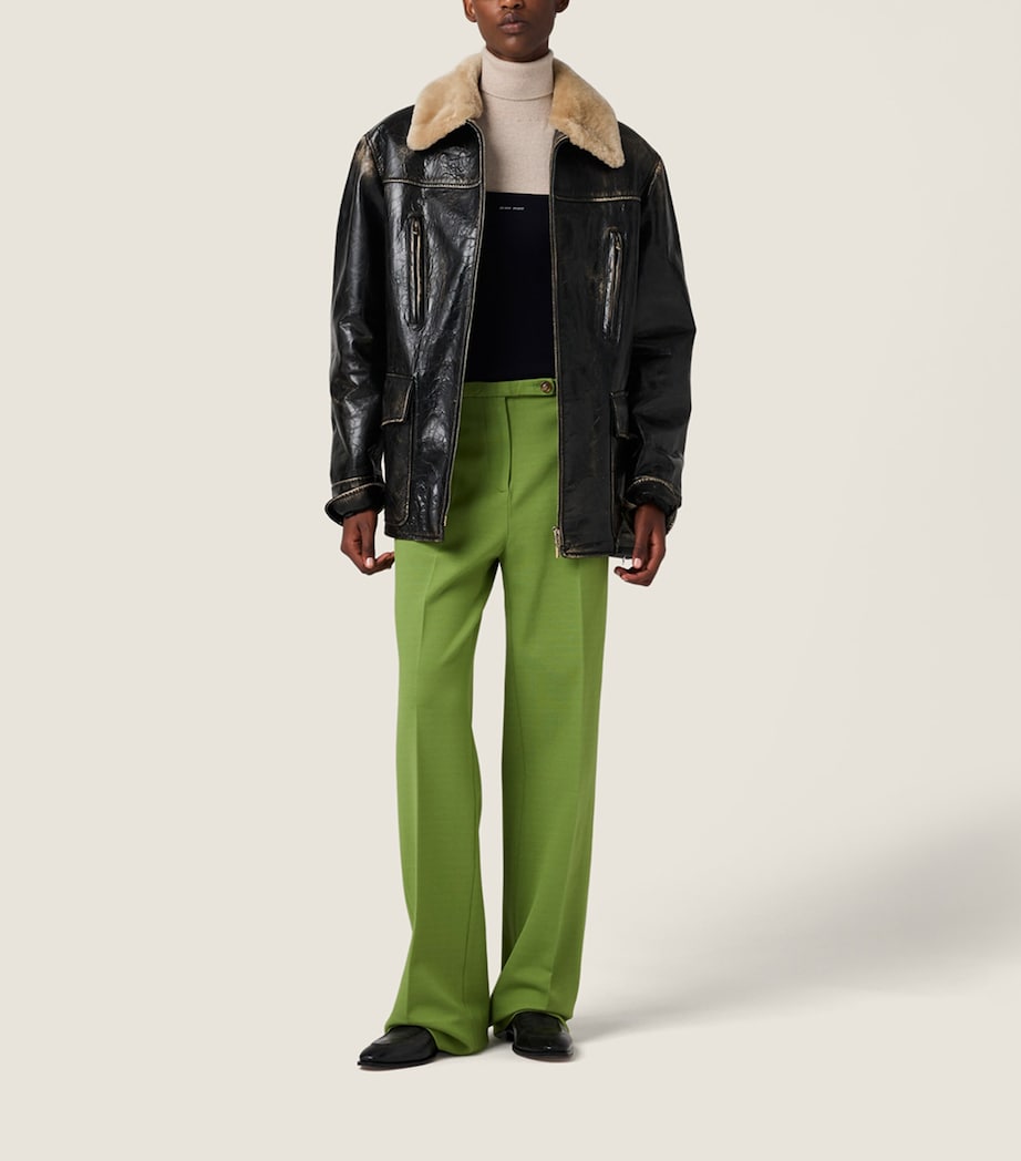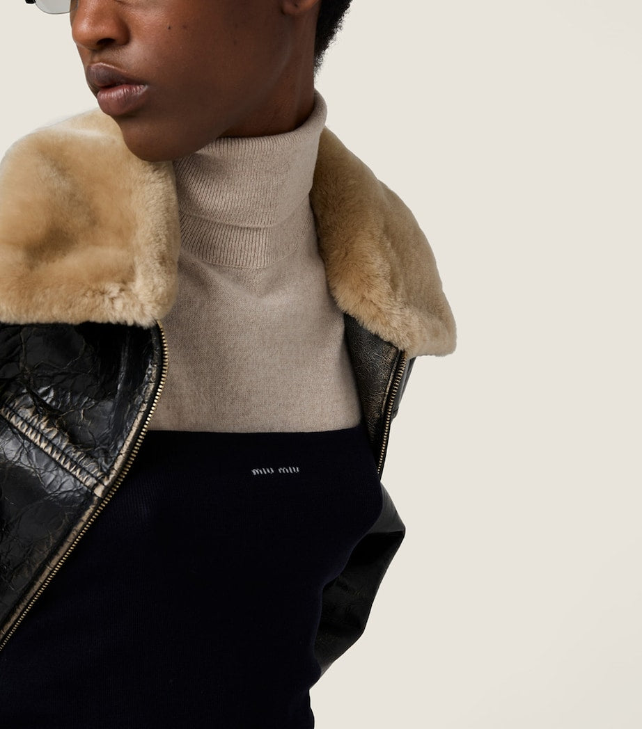 Miu Miu celebrates the curves of the female body. Crafted by Miuccia Prada, Miu Miu’s Autumn/Winter 2025 collection is a study of femininity and how it is expressed through clothes, creating silhouettes that curve to the body, rather than conforming to it. Undergarments are repeatedly referenced with pieces like this cotton tube top, with its simple lines making it perfect for contemporary layering.