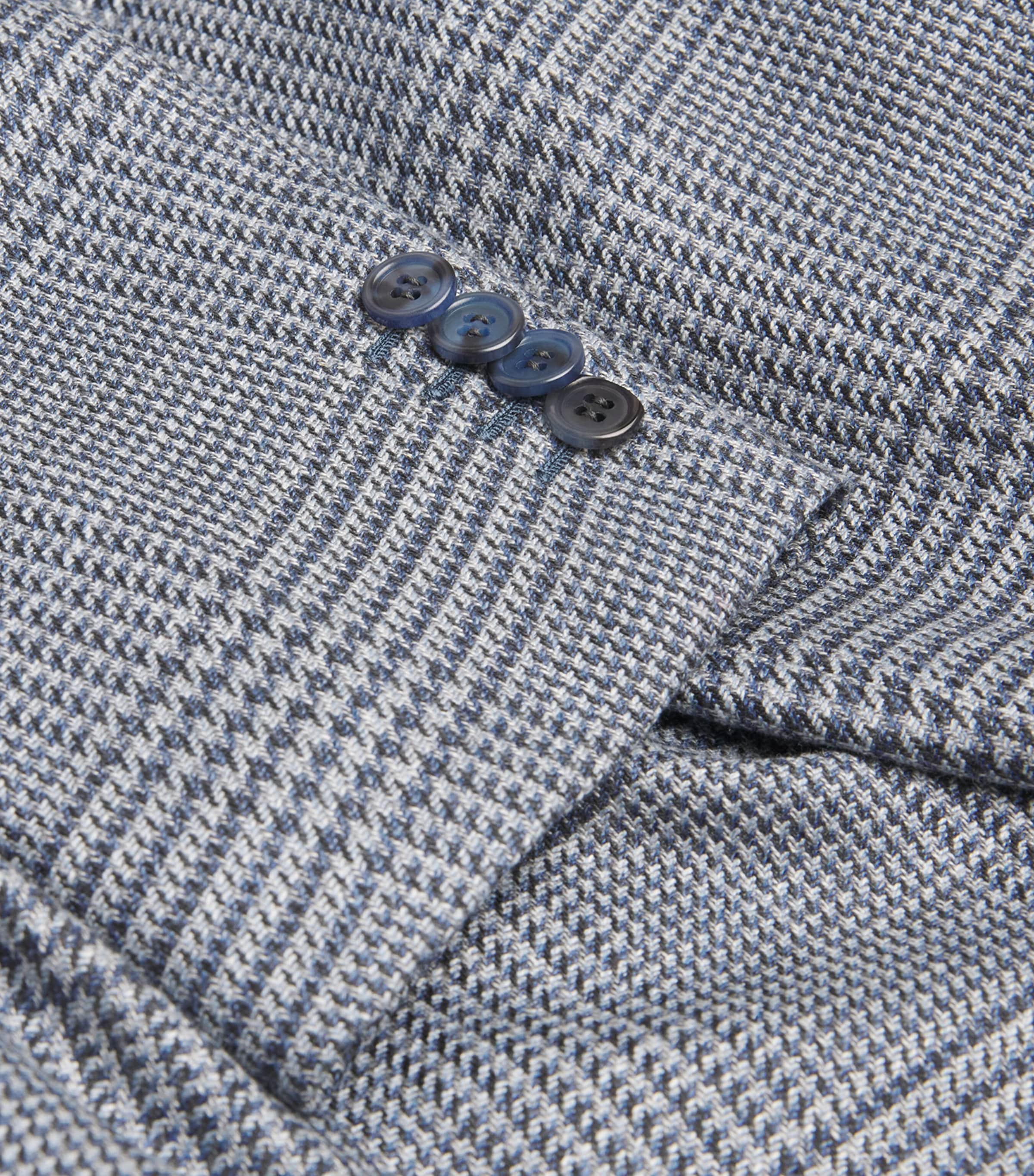 Blue Wool-Silk Houndstooth Check Blazer