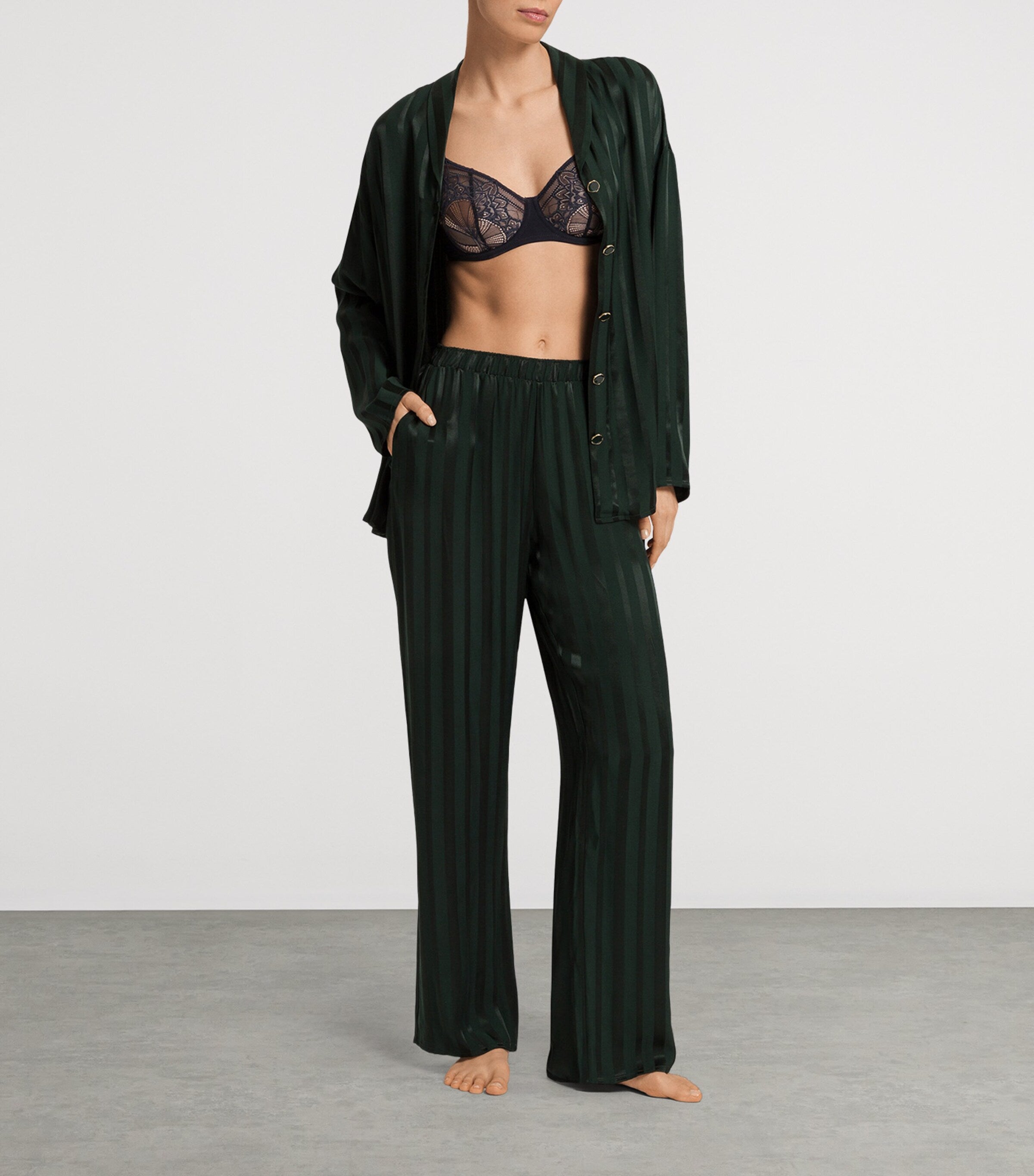 The Indra pyjama bottoms from HANRO are a refined take on loungewear, featuring tonal satin and matte stripes that shift gently with the light. Made in Portugal with an elasticated waistband and fluid fit, they offer ease, elegance and all-night comfort.