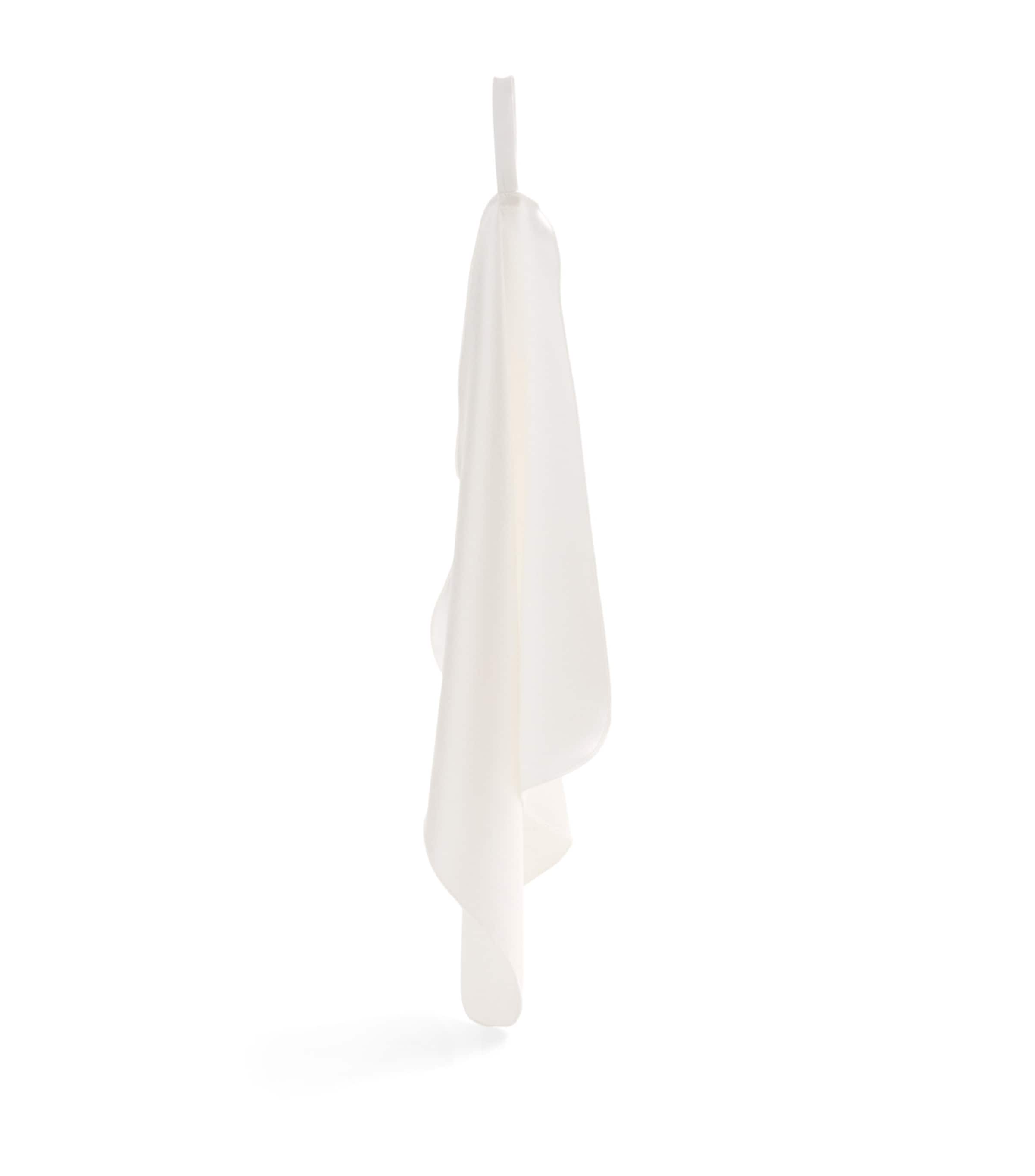 This Hyoumankind bundle features a dual-sided face cloth crafted from pure silk – one side smooth for sensitive cleansing, the other textured with raw silk for gentle exfoliation. Paired with a matching silk hair tie, it’s a luxe addition to daily rituals. The brand recommends to hand wash the face cloth in warm water before use to soften the silk.