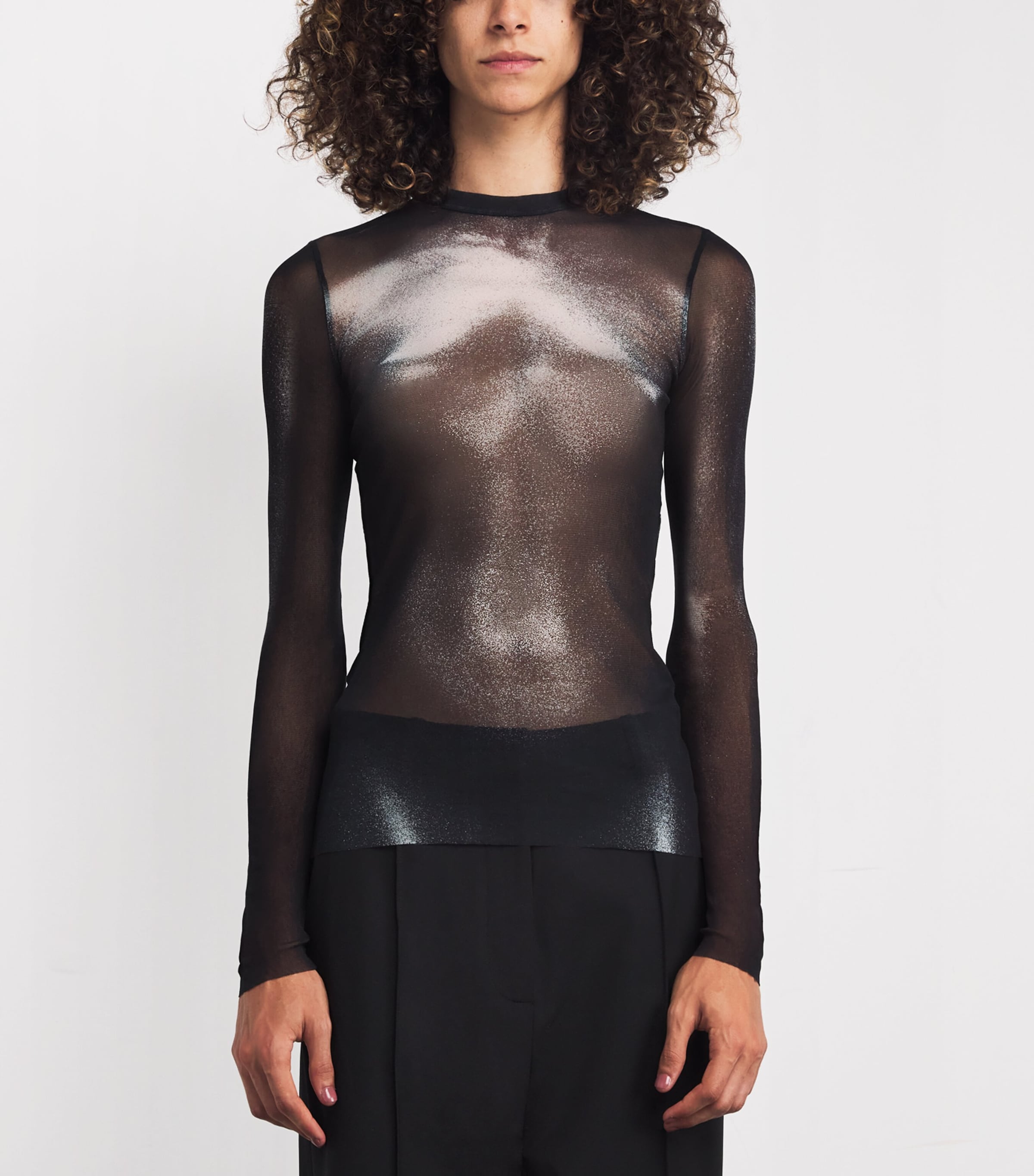 Beginning life as a party-ready staple, Jean Paul Gaultier’s long-sleeve top follows into the Maison’s long history of illusory play. Its sheer tulle construction is accented with a Body Dust print, giving it an anatomical effect every fashion-forward maven will recognise as one hailing from the French label.