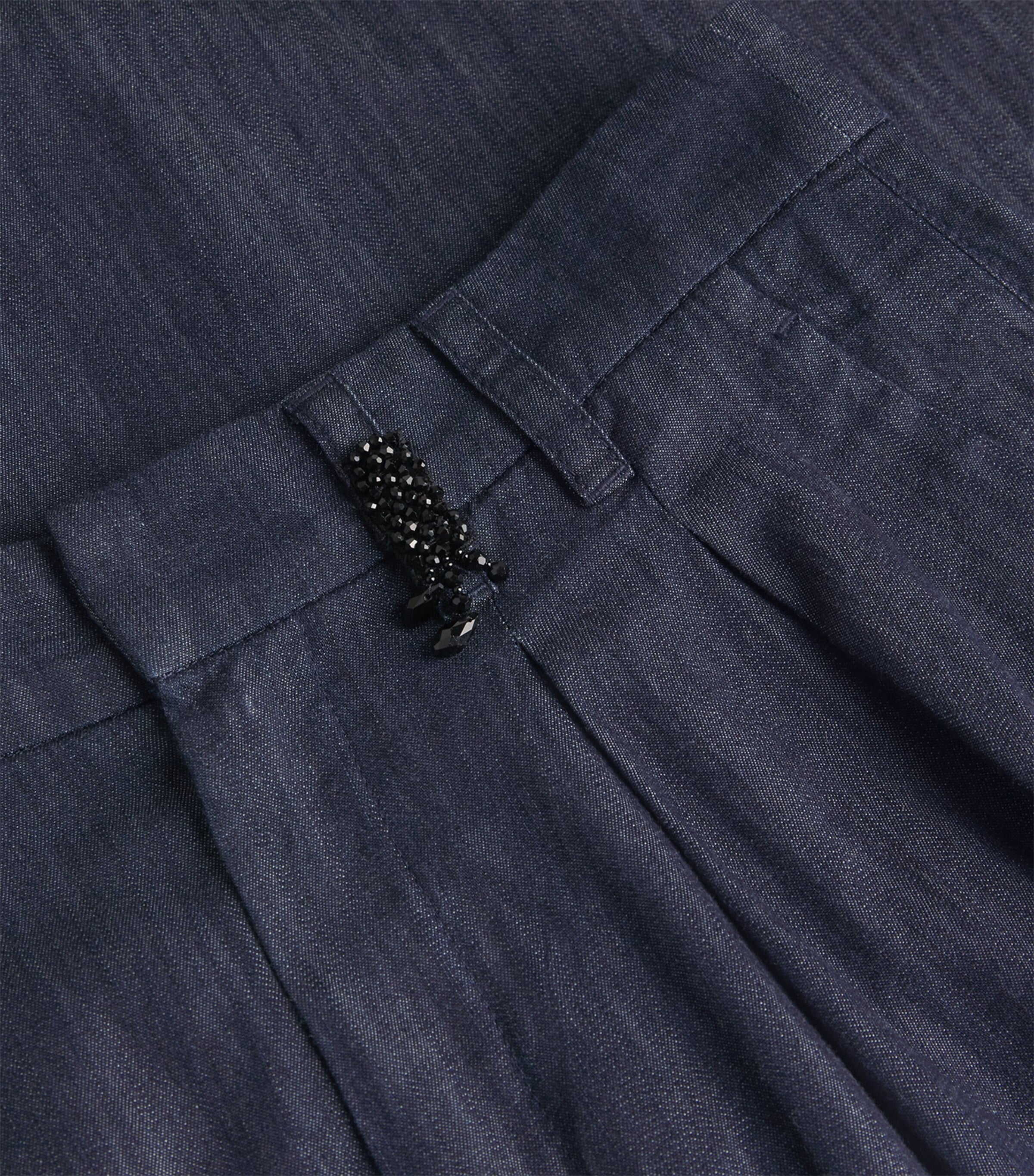 Polished simplicity meets subtle extravagance in these tailored Max Mara trousers, where a single crystal-embellished belt loop catches the light. Expertly cut for a clean silhouette, they reflect the brand’s enduring focus on impeccable construction and modern refinement.
