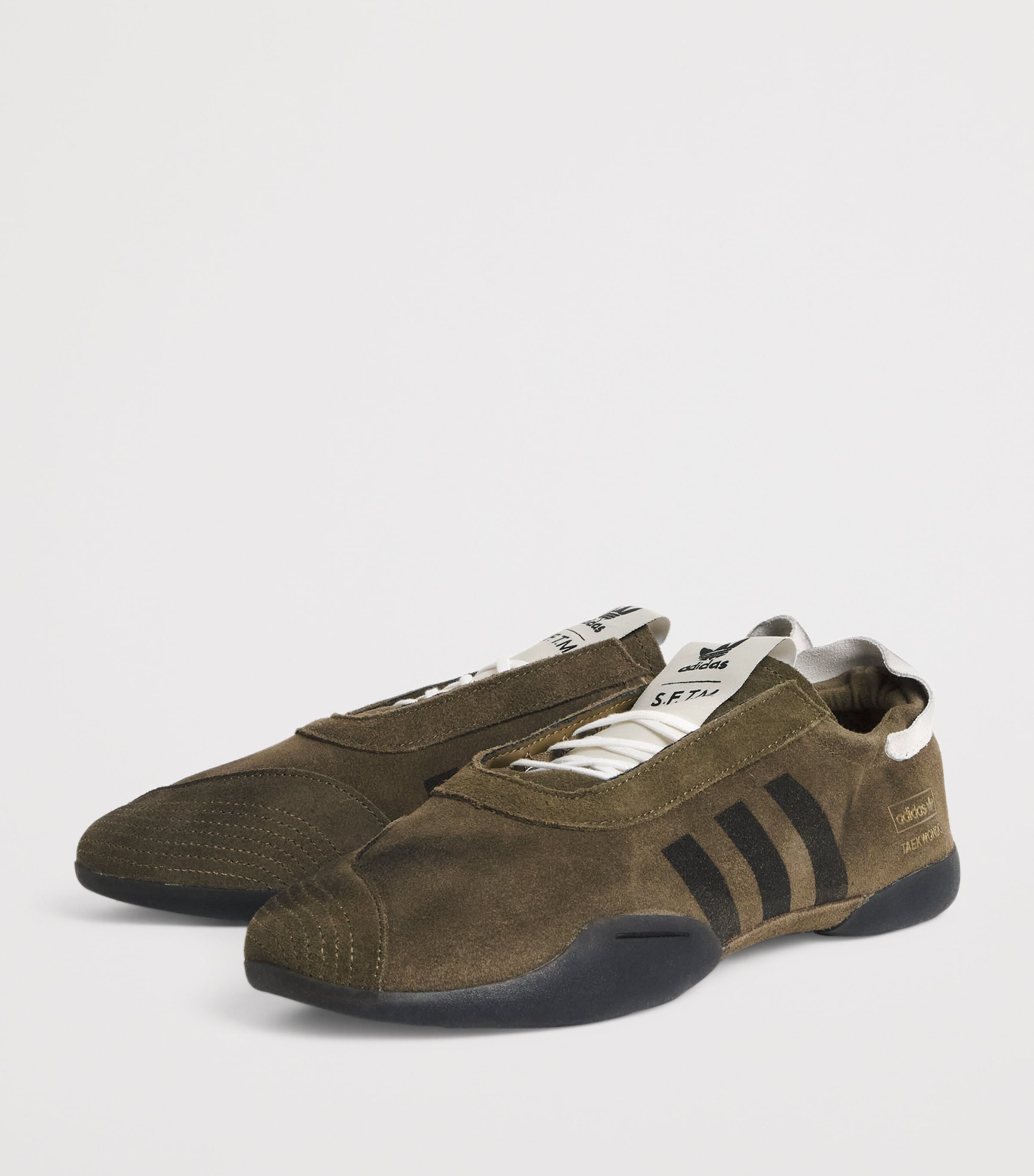 adidas Originals and Song for the Mute reimagine the Taekwondo Mei sneaker, keeping its martial-arts-inspired silhouette while adding modern details. The gathered elastic collar, laced closure and asymmetric, top-stitched toe panels give the shoe a lived-in, tactile feel, while the semi-translucent sole stamped with cracked-print 3-Stripes nods to both heritage and innovation.