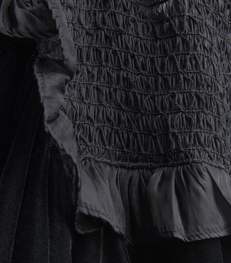 Throughout Petite Amalie’s collections, you can always expect juxtapositions of textures thanks to the Melbourne-based brand’s use of artisanal techniques and vintage inspirations. This dress features an elegant velvet backdrop and shirred details to the cuffs and neckline, elevating the winter-ready silhouette to timeless heights.