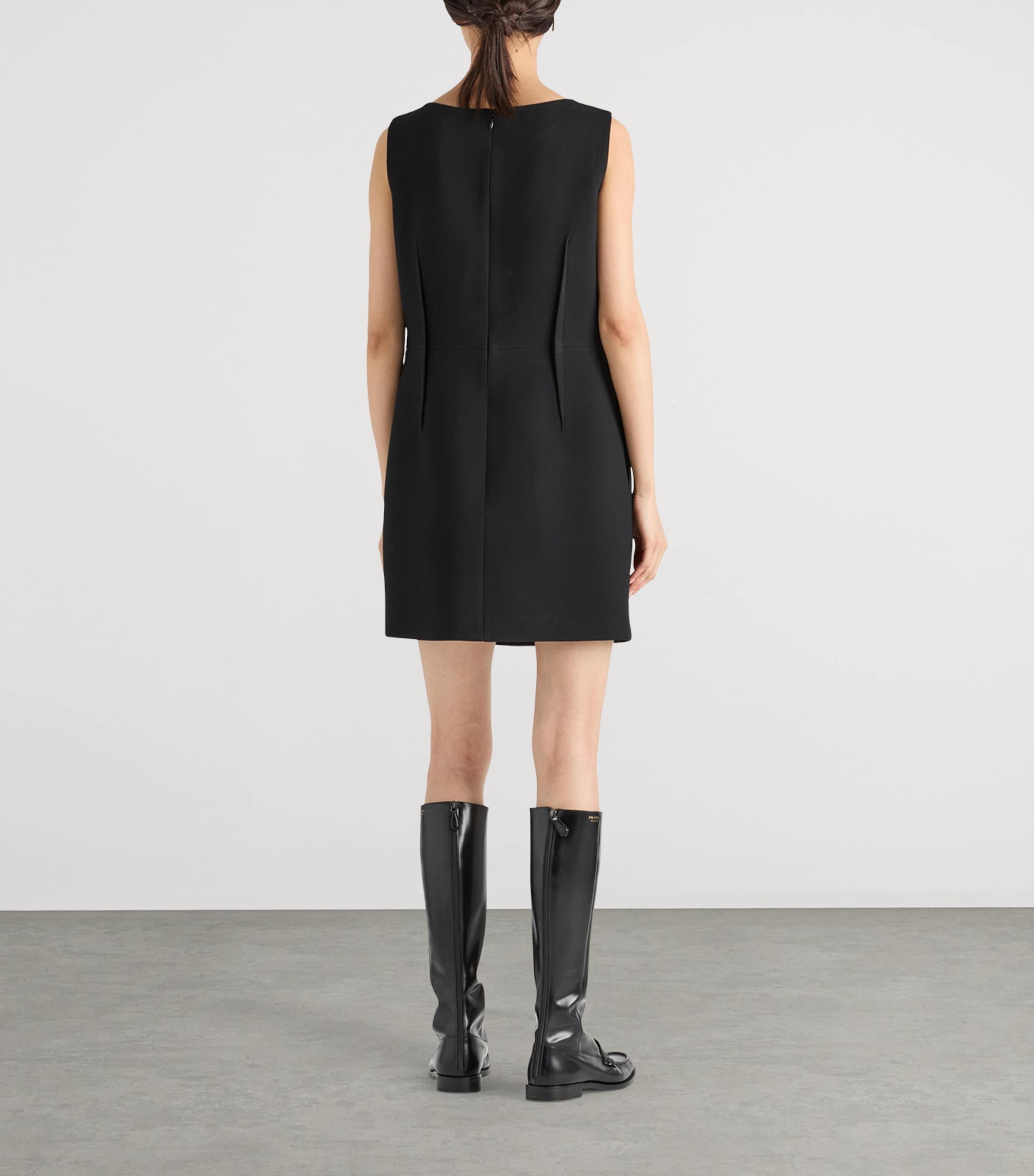 For its Autumn/Winter 2025 collection, Prada takes a conceptual approach that queries the typical perception of femininity, using silhouette and considered detail to evoke reflection. In this case of this wool mini dress, the tailored outline, thoughtful draping and minimalist bow subvert norms without departing too radically from expectations.