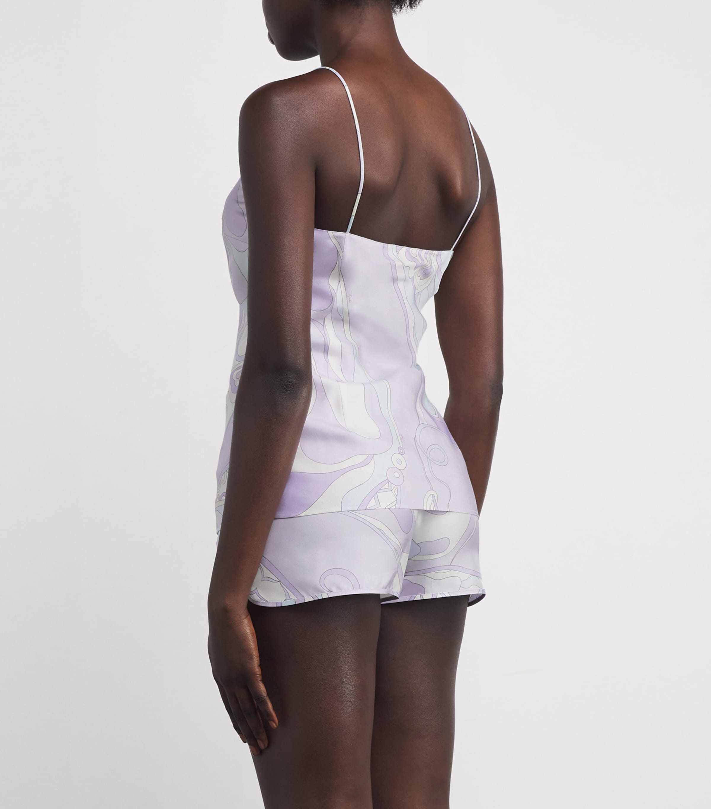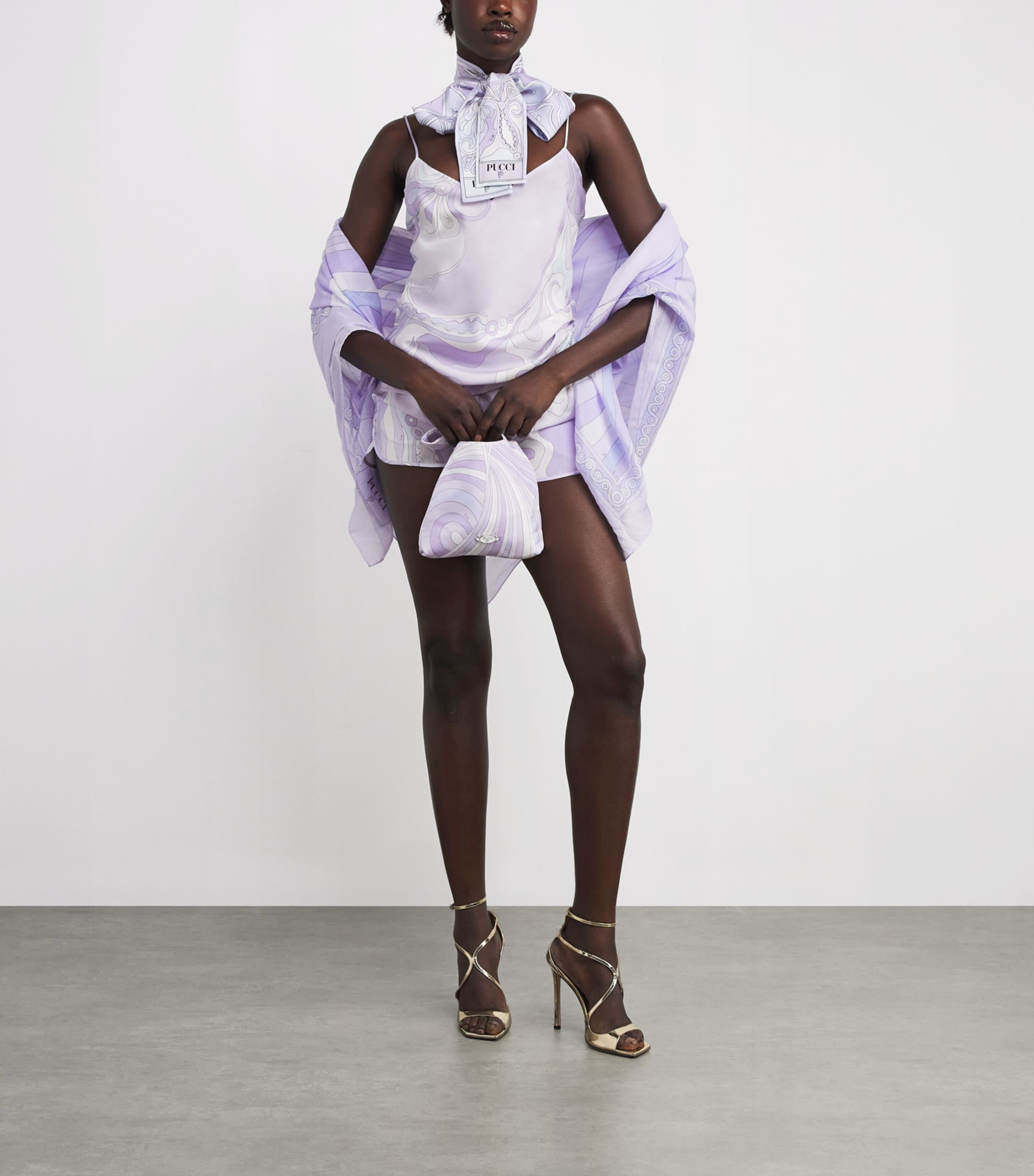 Pucci’s universe is filled with colour, dynamic shapes and hypnotic patterns that imbue any holiday edit with spirit. This cami top is crafted from lustrous silk, its silhouette brought to life by a riot of lavender hues that burst across the fabric in a signature flourish.