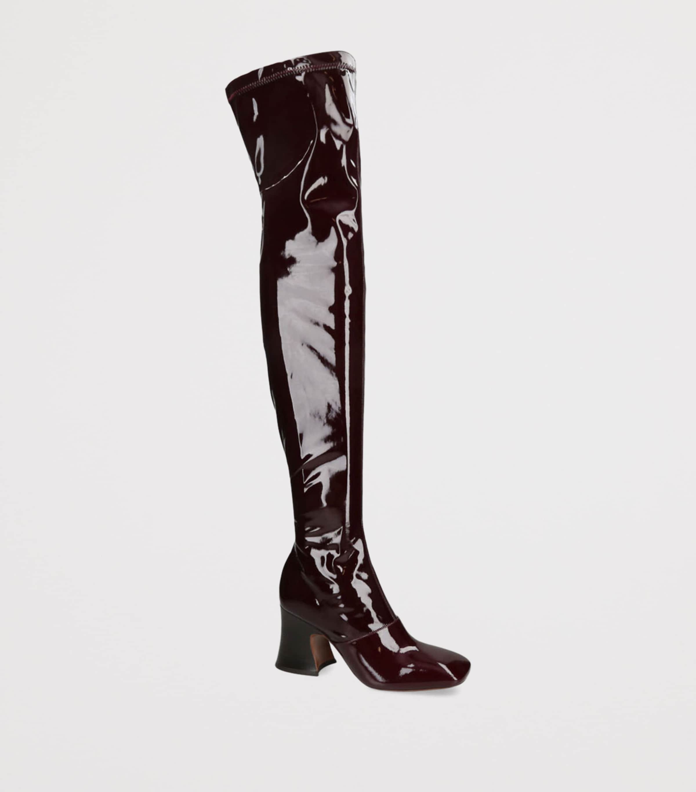 Chloé uplifts fine footwear craftsmanship when creating the Janis over-the-knee boots, working with artisans in Italy to meticulously construct each pair. Set atop a chunky block heel, the uppers are made from glossy patent leather sourced from a tannery that is certified by the Leather Working Group.