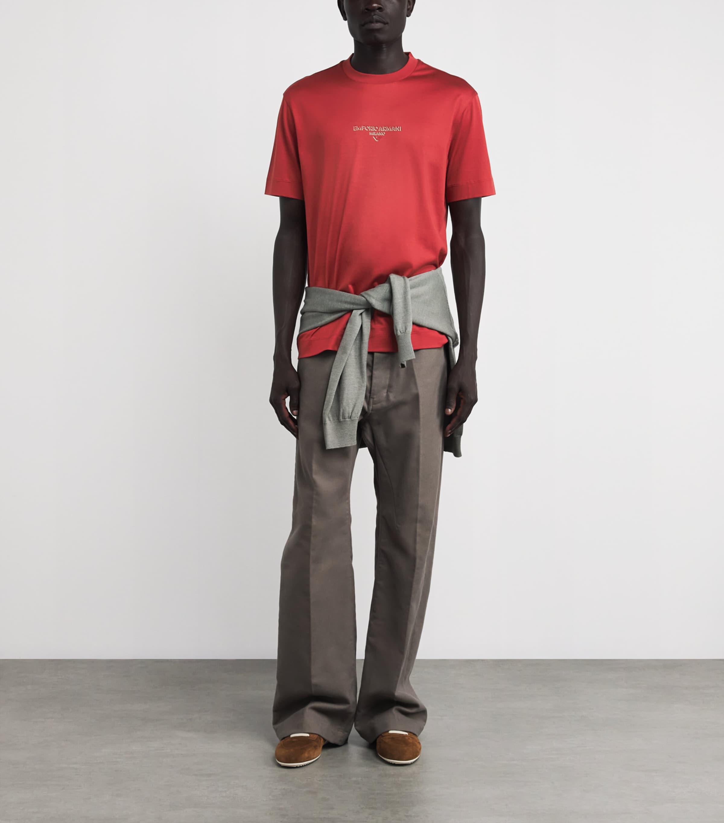 Emporio Armani explores the dialogue between minimalism and spectacle in this Clubwear capsule T-shirt. A cotton-infused jersey foundation anchors the design, while rhinestone logos shimmer across the chest and back, their heat-sealed application providing permanence and shine, ensuring the monochrome palette glistens even on evening occasions.