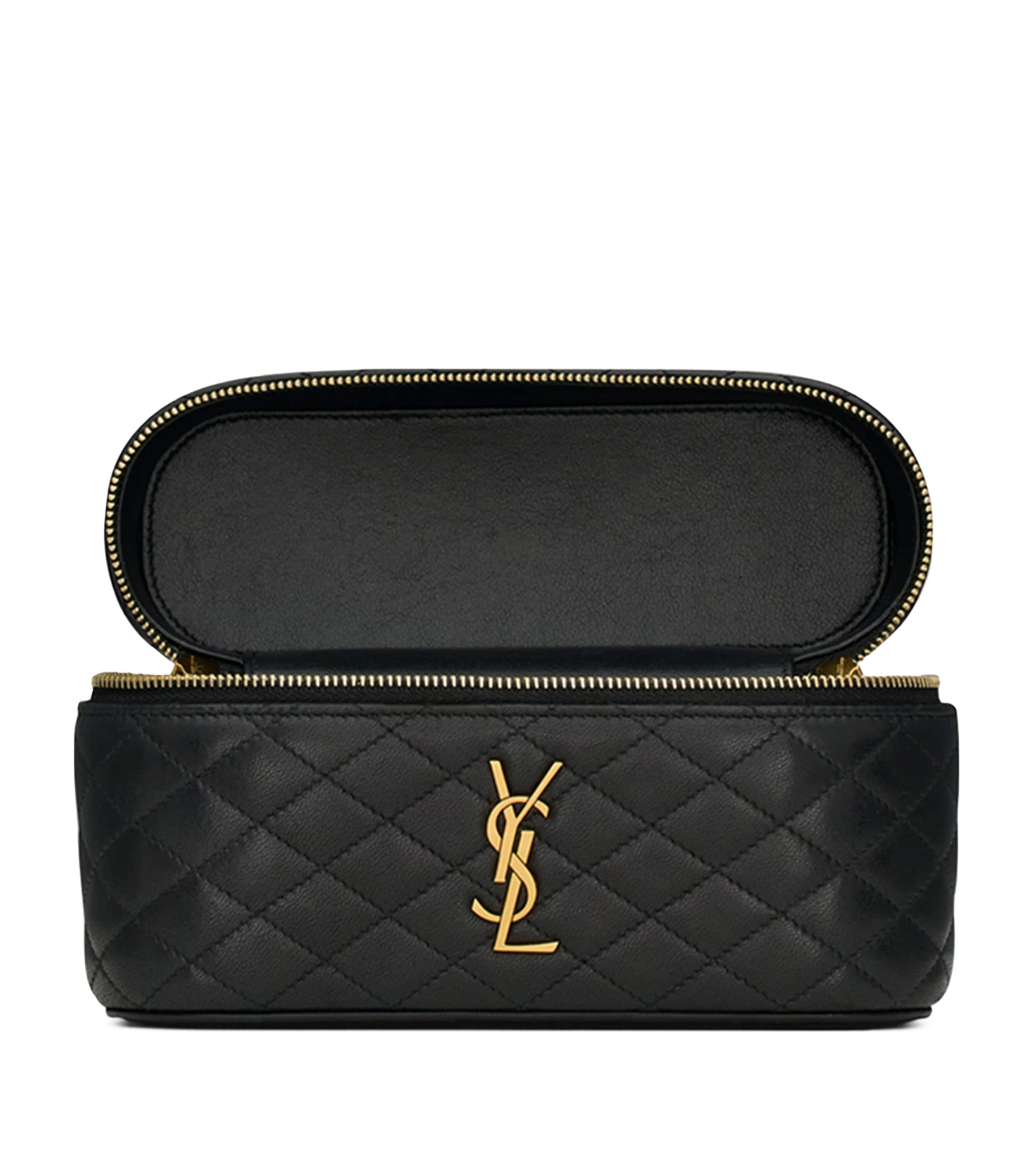 Saint Laurent's Gaby collection embodies classic Parisian style with its iconic matelassé stitching, creating a quilted leather look that's signed off with coveted YSL hardware. This mini bag takes a delightful box shape, providing it with a youthful feel and plenty of room for your essentials within its sophisticated design.