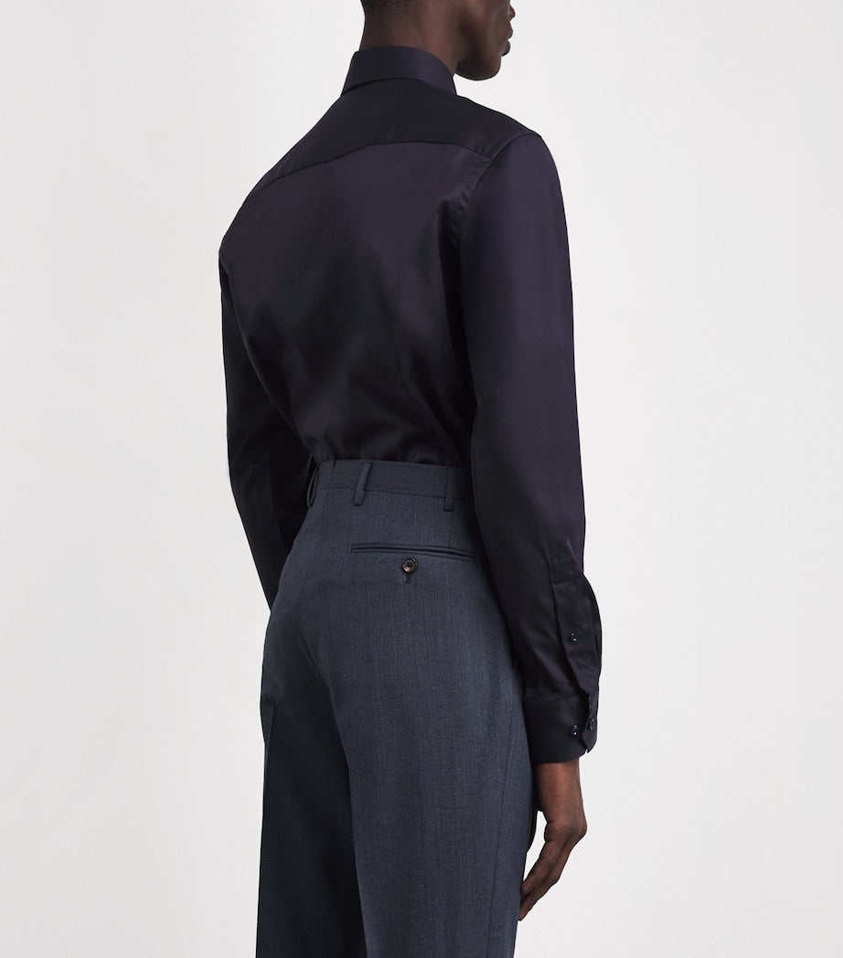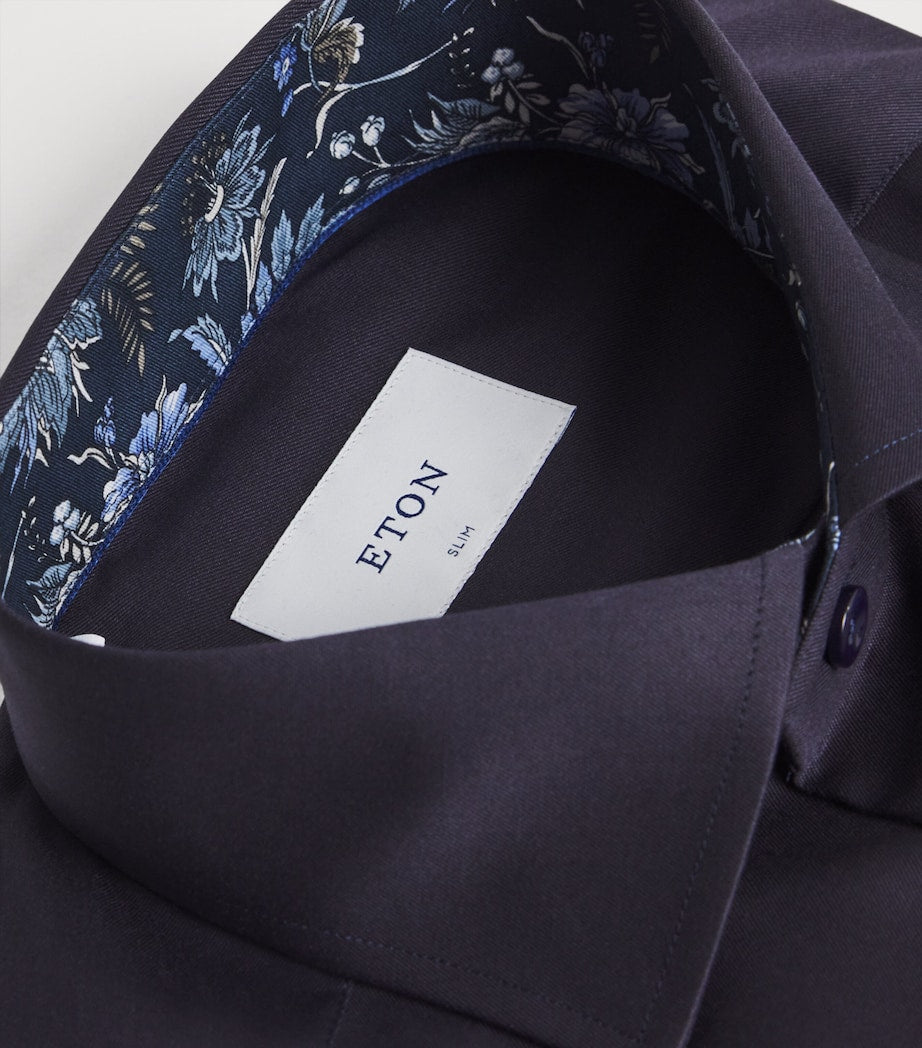 Eton’s Signature Twill shirt is crafted from wrinkle-resistant cotton, balancing structure, suppleness and lustre. Inside the collar and cuffs, a discreet floral pattern introduces refined character – a subtle nod to individuality within a timeless, sharply cut silhouette.