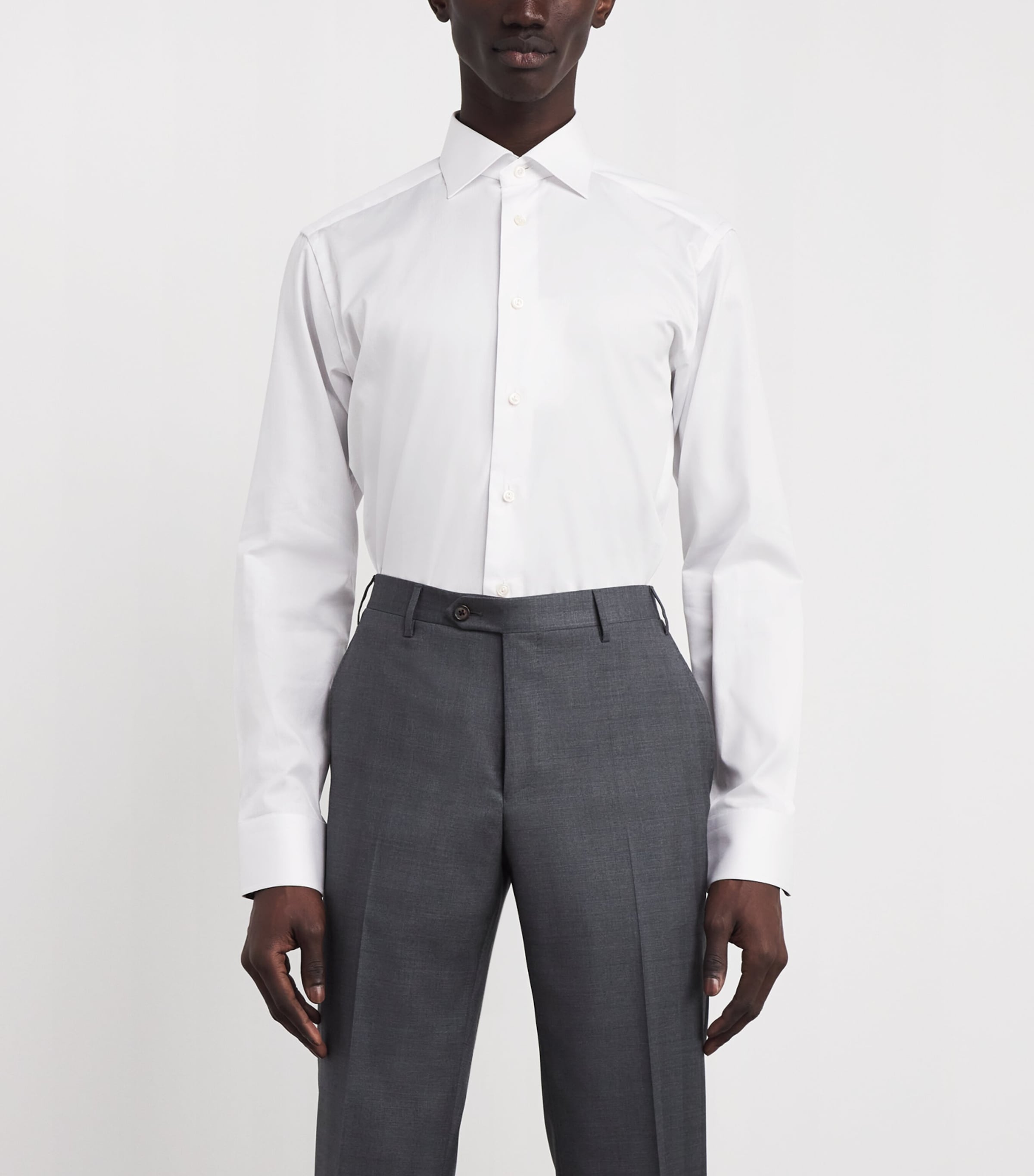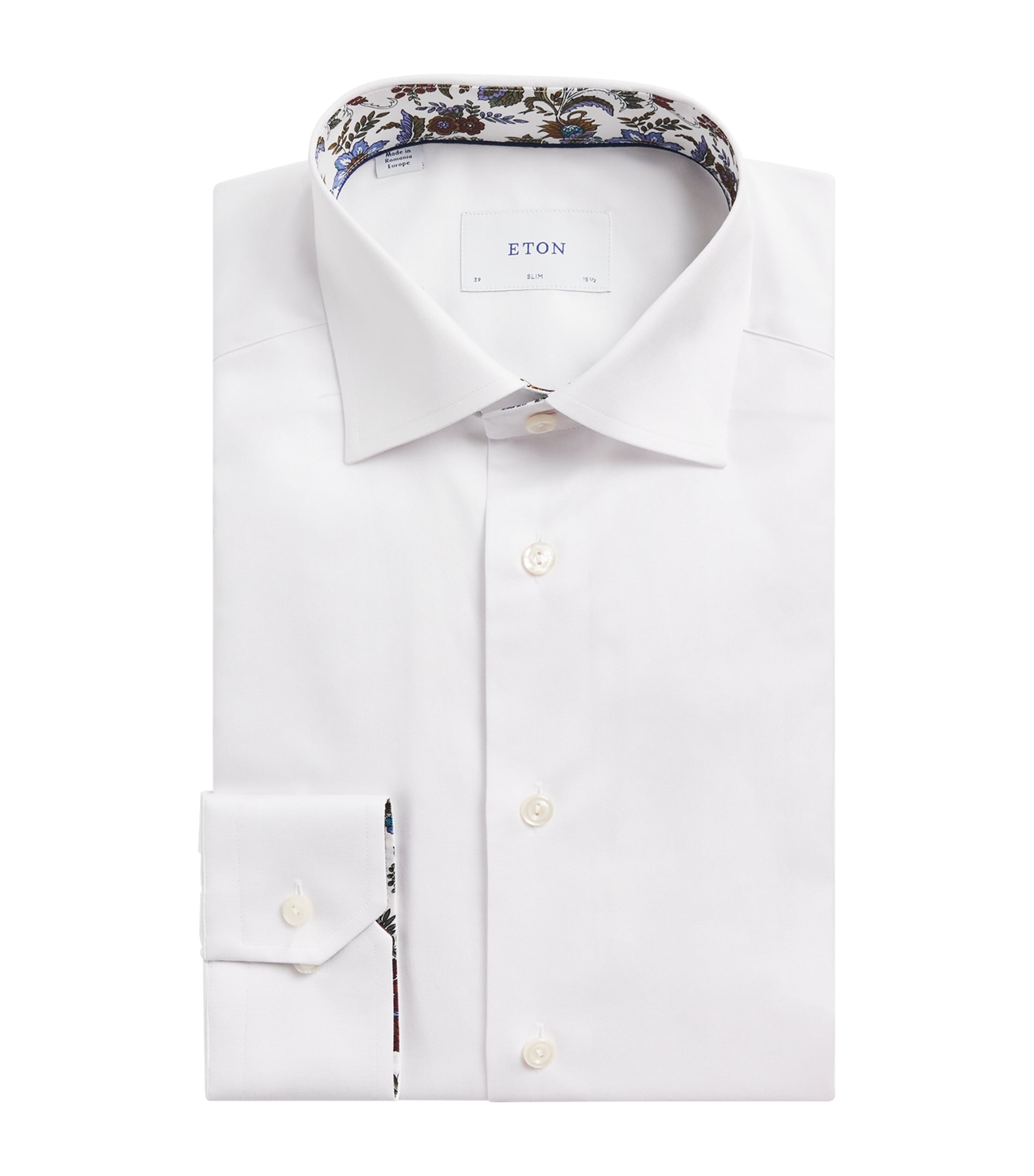Signature Twill Floral-Trim Shirt - white floral / 38