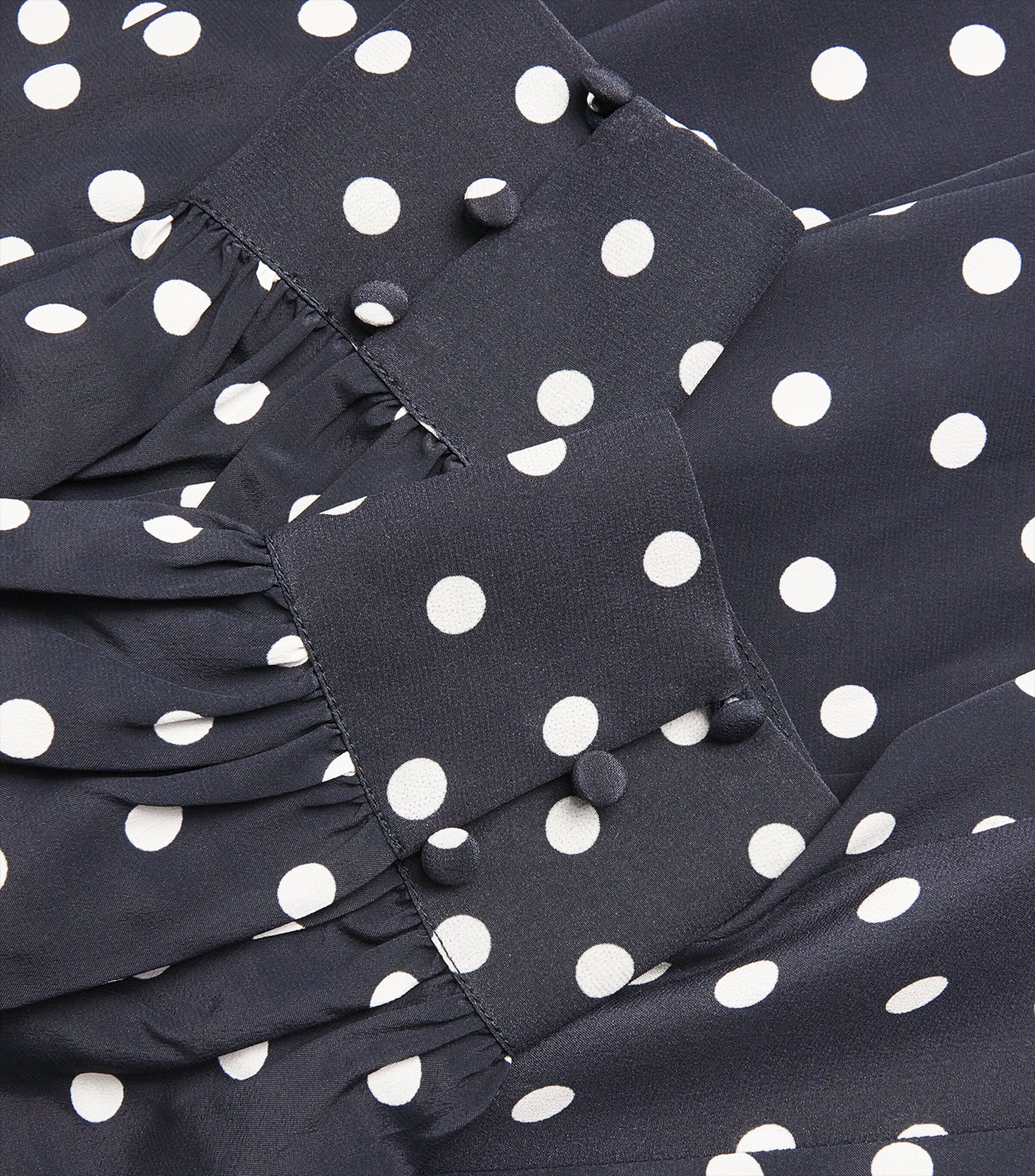 Vintage polka dots are the perfect pairing to silk crepe de chine.