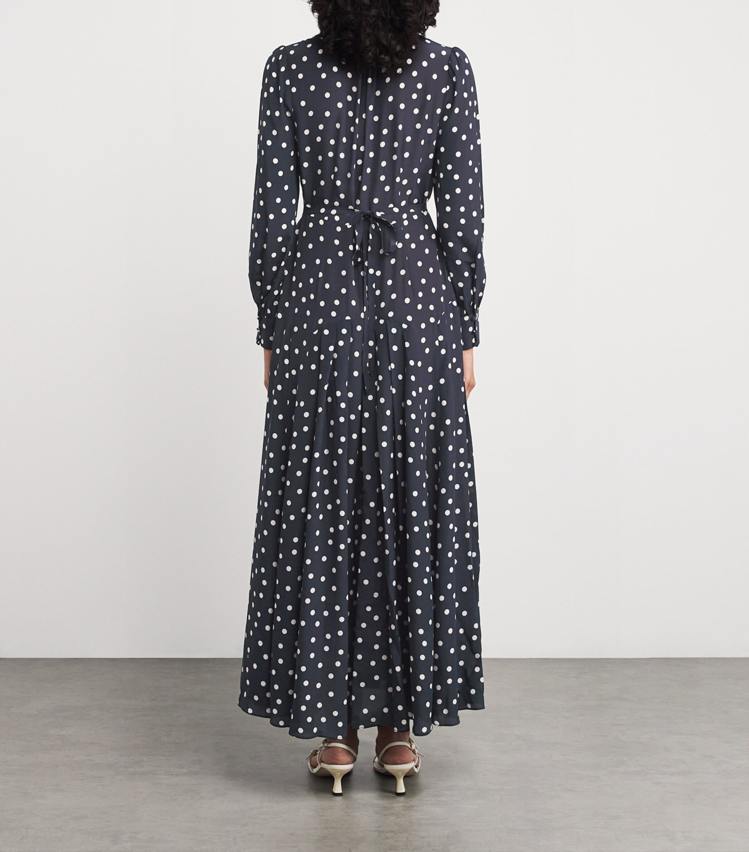 When the Meg dress first debuted, RIXO knew it was onto a winner. The Marigold style builds on this legacy, elongating the silhouette with longer sleeves and a versatile neck tie that can be styled in myriad ways. Meanwhile, fluid silk and a timeless polka-dot print provide a feminine finishing touch.