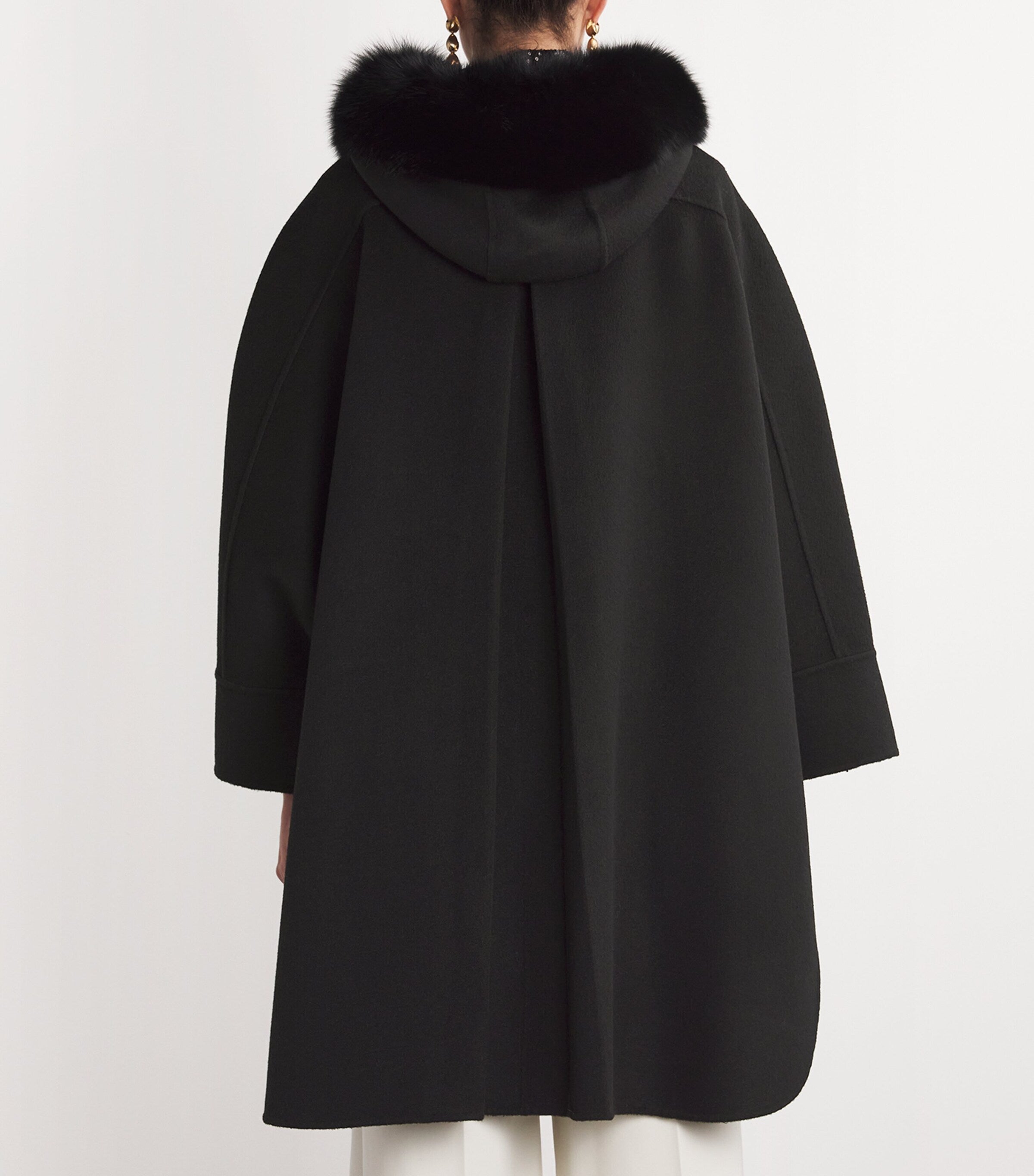 Few garments are as elegant and time-honoured as the cape, known for its enveloping silhouette and typically noble compositions. Yves Salomon reinterprets the look for its Autumn/Winter 2024collection, transforming it into a lightweight winter coat. Here, the durability of wool is blended with precious cashmere, while a sumptuous fox-fur collar cements its luxury status.