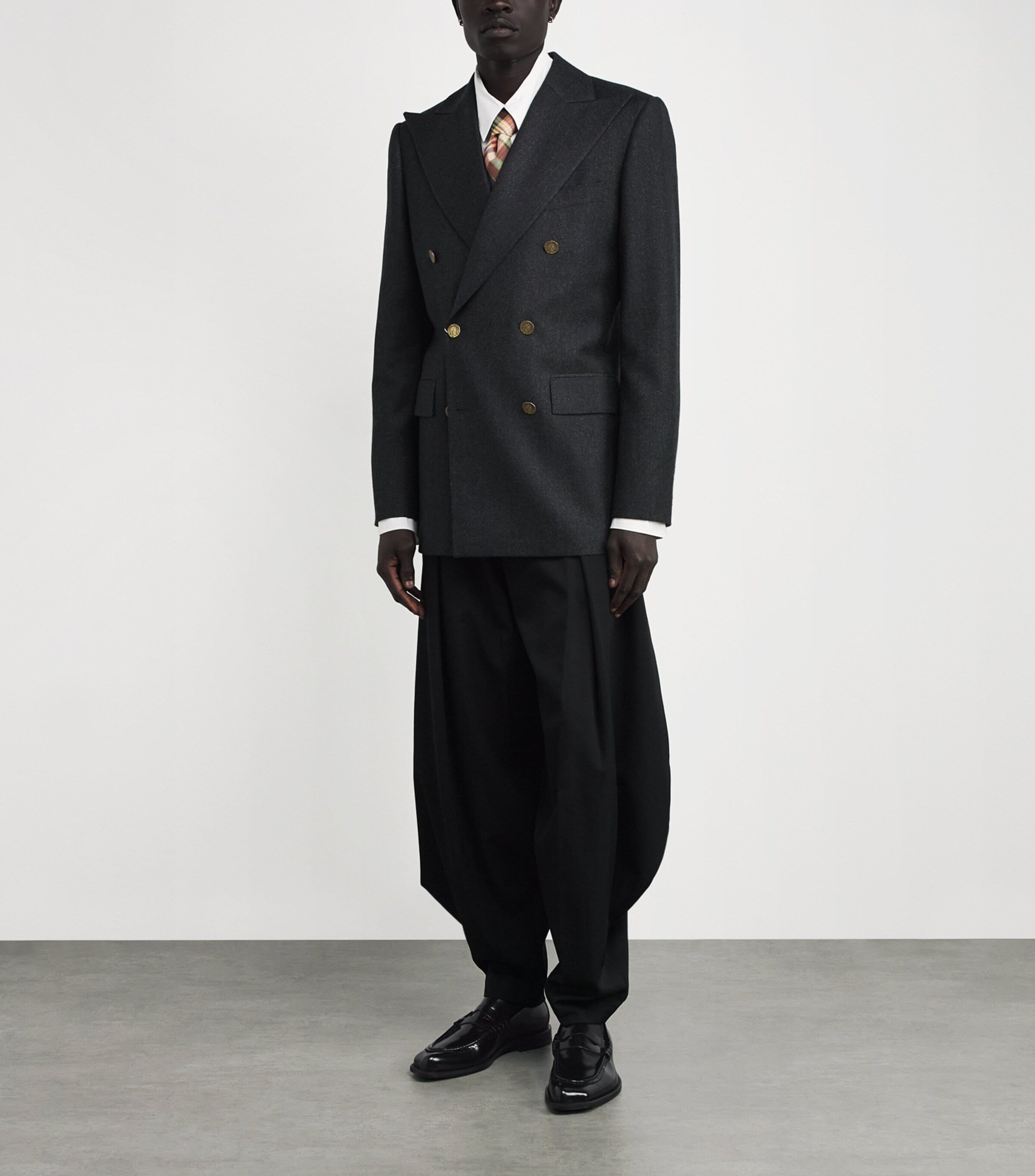 Designed with Vivienne Westwood’s typical eye for subverting classic norms, these coin loafers are crafted from patent leather and feature details that are no less noticeable for their tonal, dimensional qualities. As a final sign-off of the British brand’s quirky design philosophy, this pair’s toes are shaped to an unusual asymmetric silhouette.