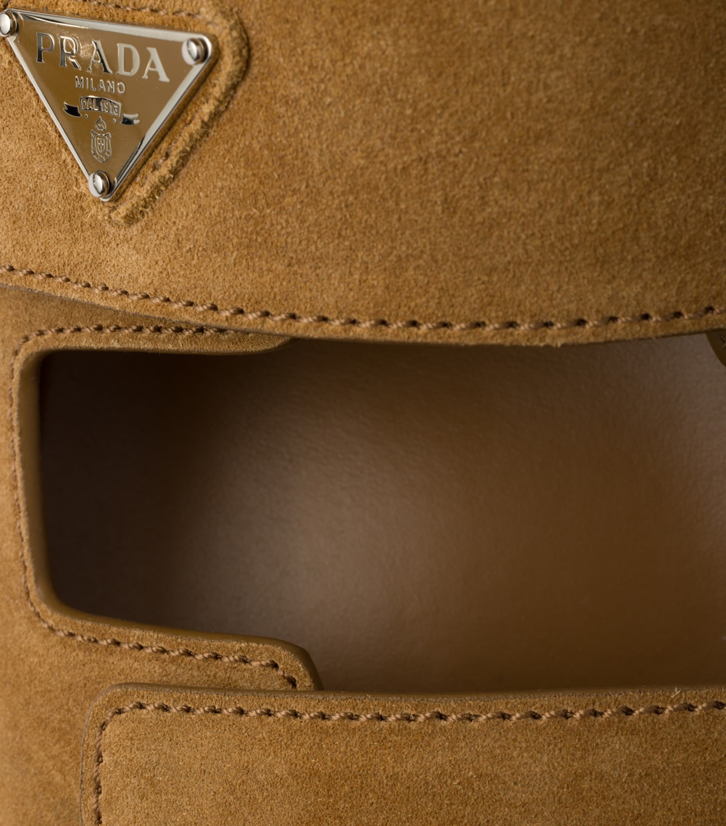 Prada presents this pair of suede sandals as an ode to its flair for laid-back Italian elegance. Their velcro uppers, accented by the signature Triangle hardware, are placed upon a comforting footbed, meaning you can while away the hours with comfort and style always guaranteed.