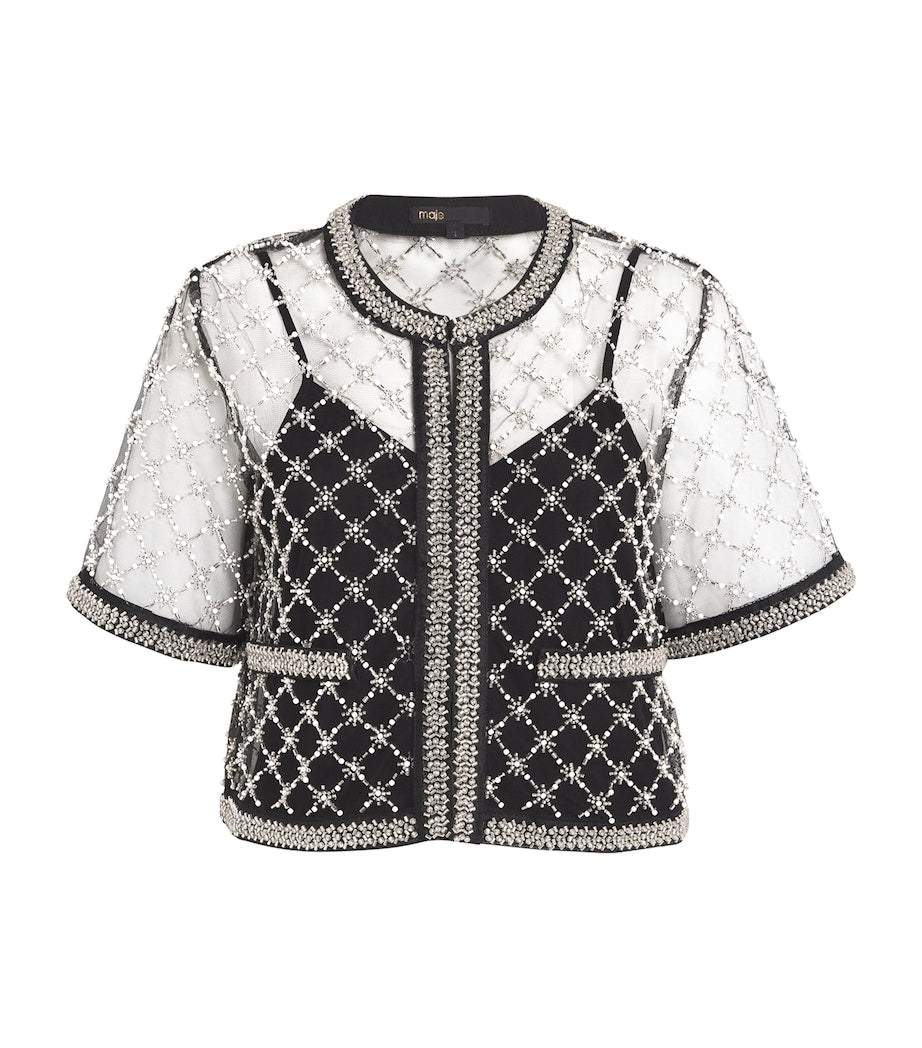 Black Mesh Beaded Top