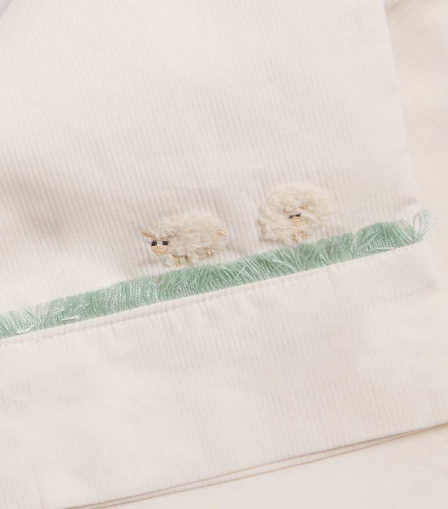 As soft as a baby lamb, the cotton corduroy Micah trousers offered by Gingersnaps have been crafted with form and function in mind. Each cuff is lined by a soft green stitch and punctuated with adorable fluffy friends in the brand’s charming artisanal style. Complete with an elasticated waist for ease of movement and comfort, this playful pair lend itself to any occasion.