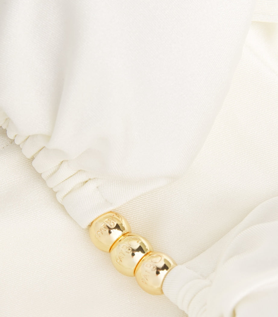 Gleaming beads bring the signature PatBO flair. The beauty of its native Brazil is an endless pool of inspiration for PatBO in more ways than one. The label not only puts a spotlight on the country’s spectacular land and seascape, but also its technical expertise through locally crafted designs such as this Coral bikini top.