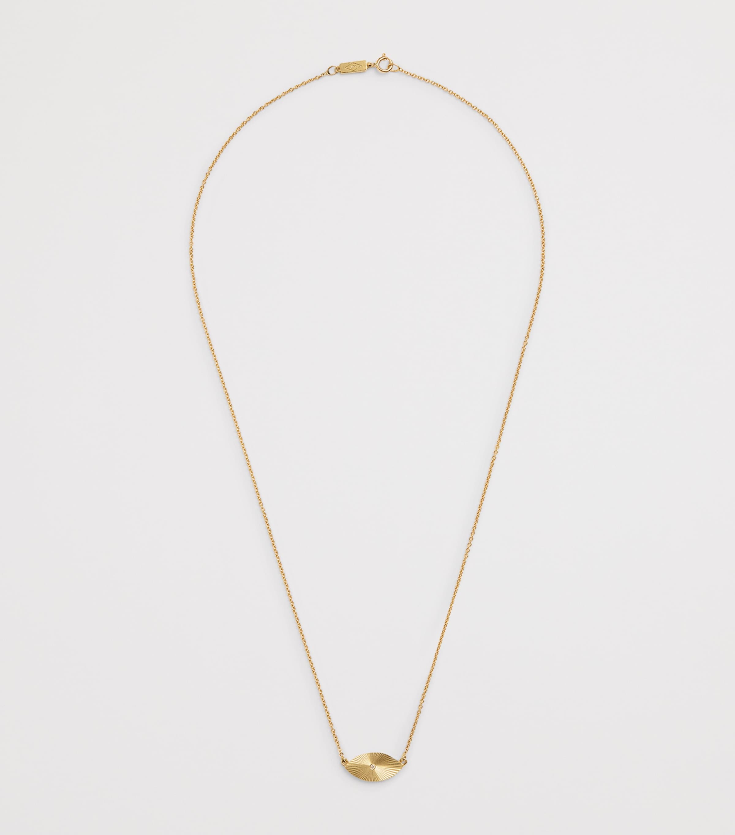 For centuries, the evil eye has been used to ward against threats and misfortune, with the motif frequently seen in jewellery design as a way of protecting its wearer. Jennifer Meyer's take on the ancient amulet is here presented upon a yellow gold necklace, the eye handcrafted with a retro corrugated pattern and punctuated with a shining diamond iris.