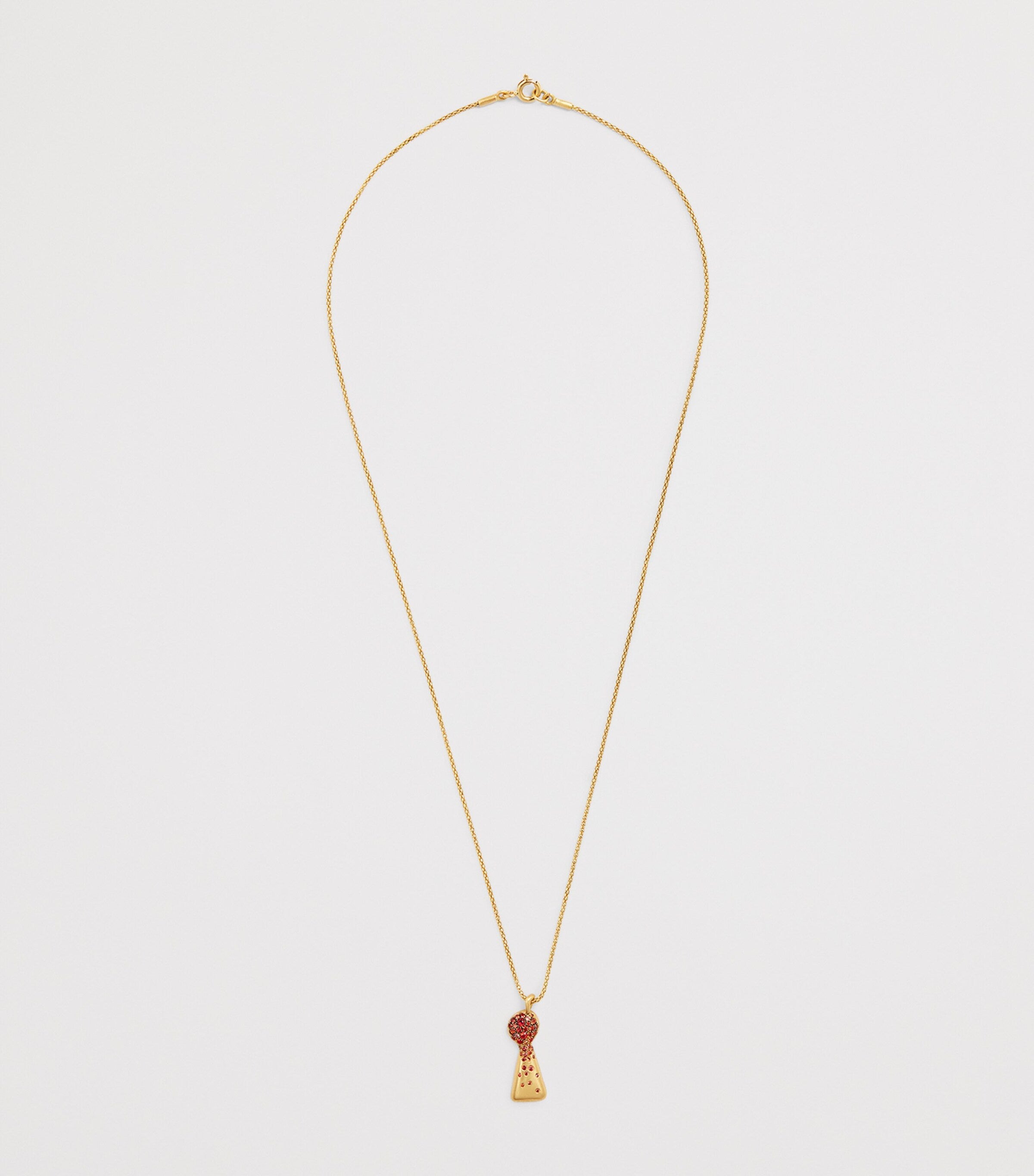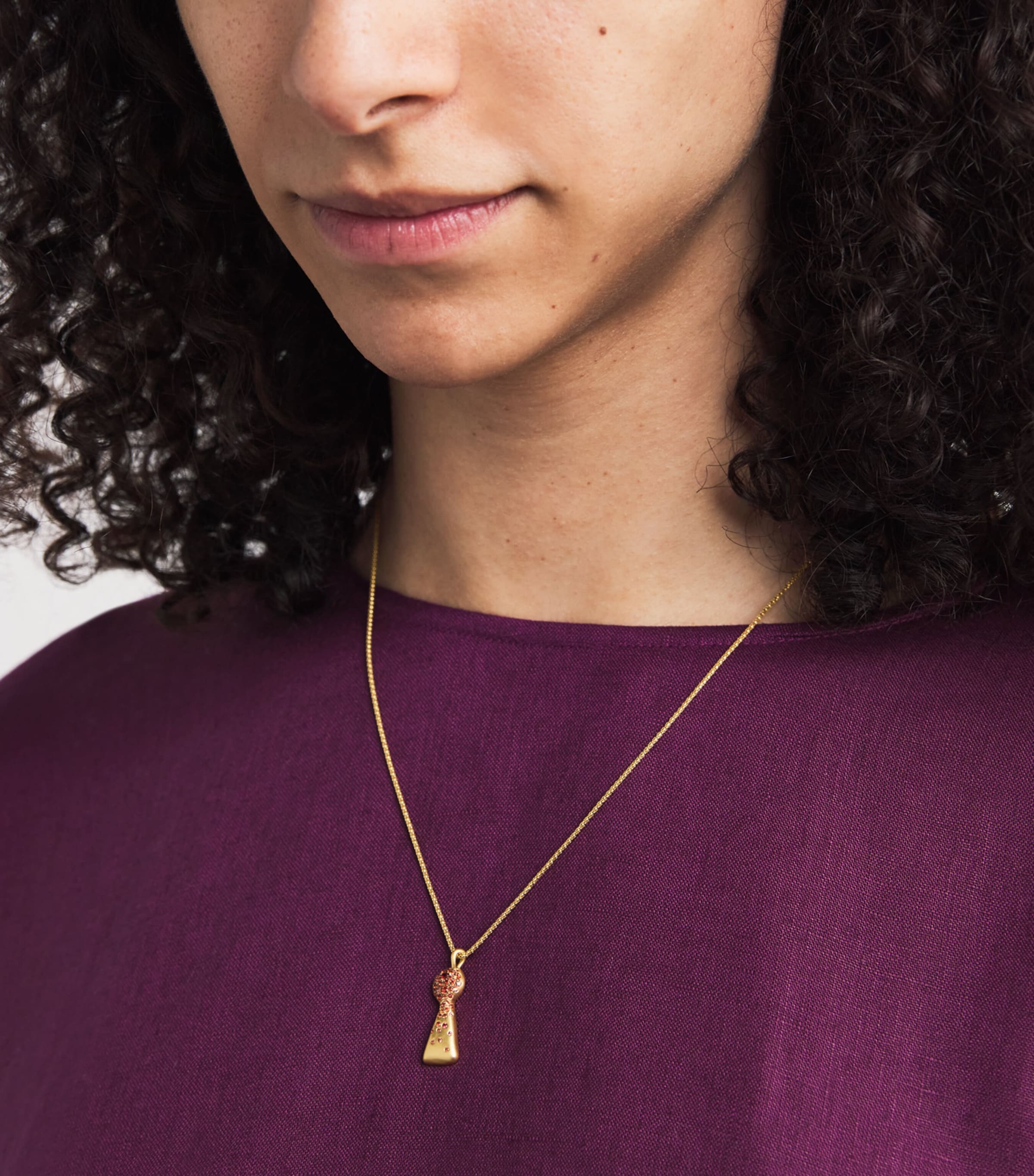 Nada Ghazal channels the magic of new beginnings with the symbol of the door. In her search for a new London home, the designer stumbled upon a turquoise door that assured her she was on the right path, a gateway that she brings to life with the Doors of Opportunity collection. The Unlock Happiness necklace is crafted from 18-karat yellow gold and strung with a sapphire-encrusted keyhole charm that encourages you to embrace the power of transformations and new opportunities.