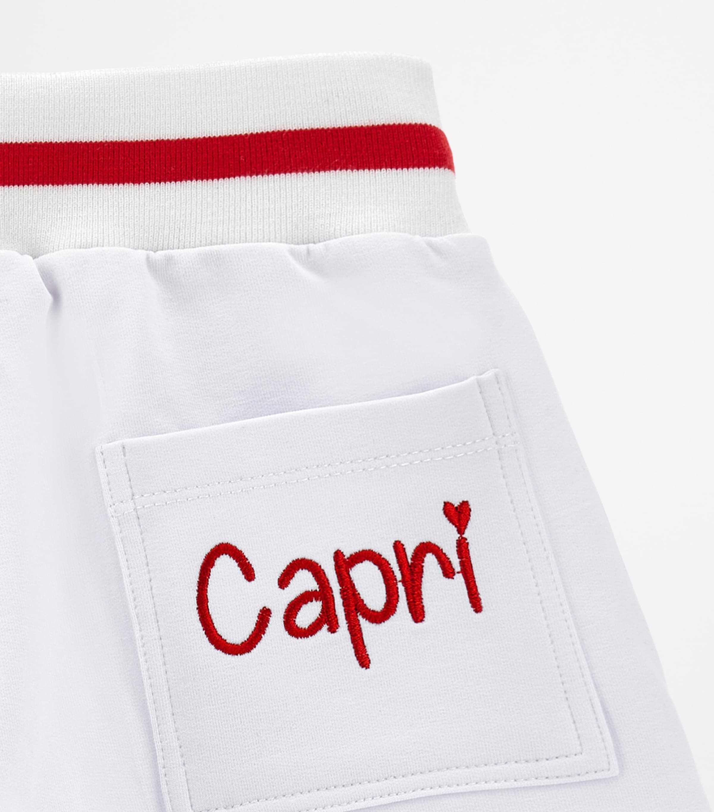 Monnalisa injects two of its favourite things this season into this pair of shorts, leopard print and its Italian heritage. Lovingly rendered in soft cotton, this pair takes on a sporty waistband coupled with leopard print piping and the beautiful island of Capri's namesake on the back pocket.