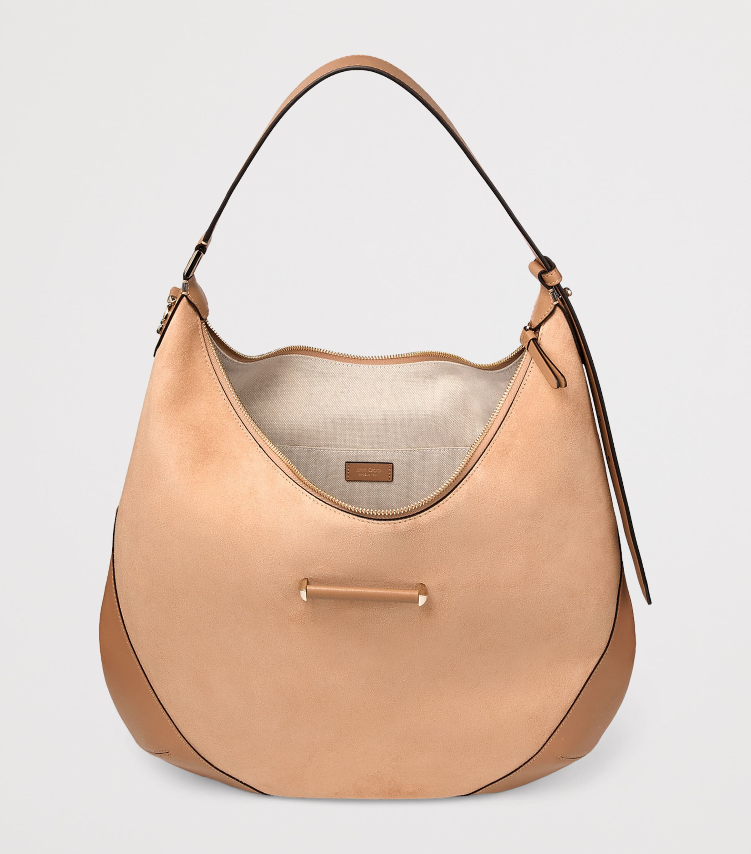 Elegance comes naturally to Jimmy Choo's creations. The Bar shoulder bag by Jimmy Choo spotlight’s the brands leathercraft. Made from suede panels stitched together to create a geometric effect, the style is named for the bar that the central flap closes through. Use the adjustable strap to loosen the style over your shoulder.