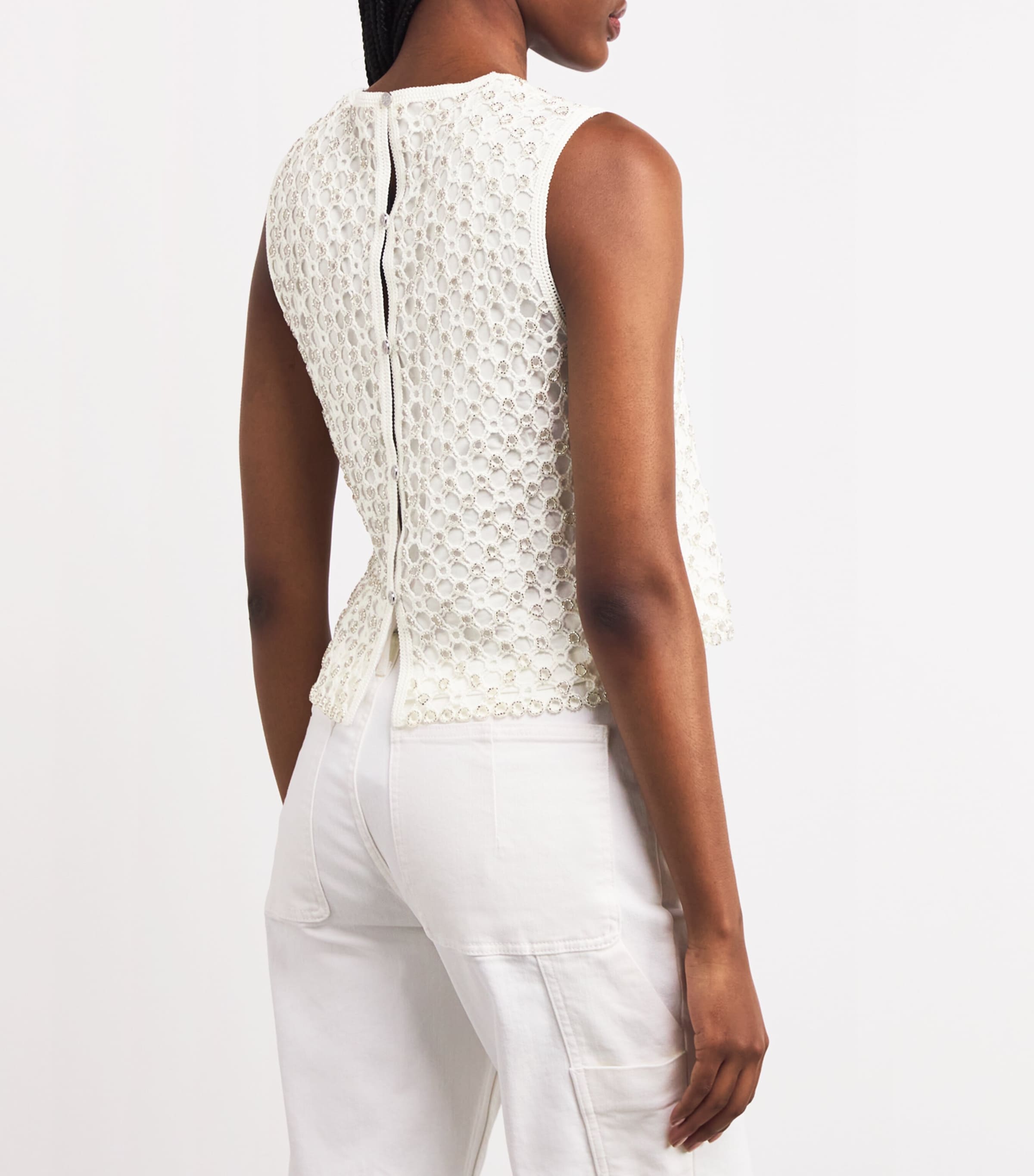Maje White Crochet Beaded Top