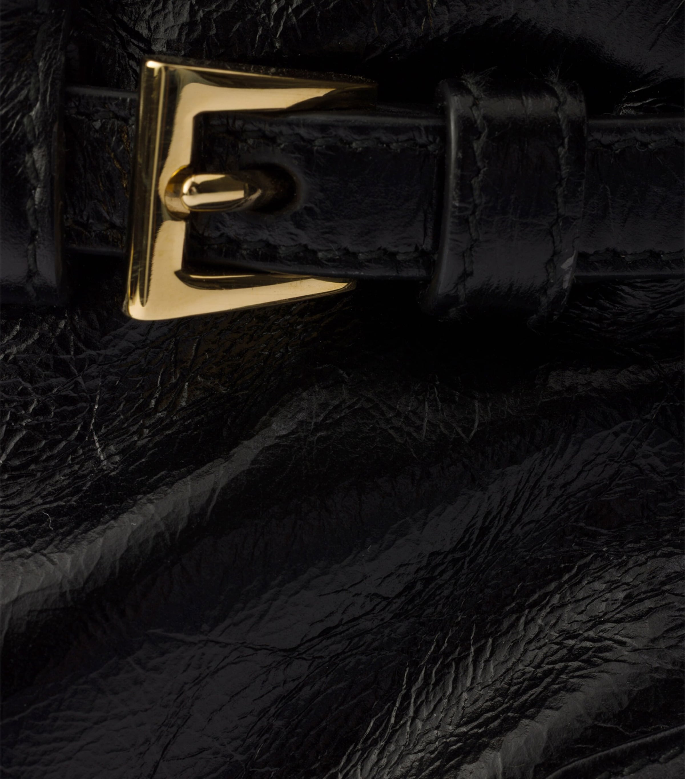 Prada, a House renowned for its affinity to clean lines, elegance and innovation, introduces the Bonnie bag – a sophisticated design in soft leather with a liquid, glossy finish. This mini silhouette focuses on a minimalist aesthetic, animated only by the Triangle moniker, decorative buckle straps and drawstrings; it’s a piece that undoubtedly speaks for itself.
