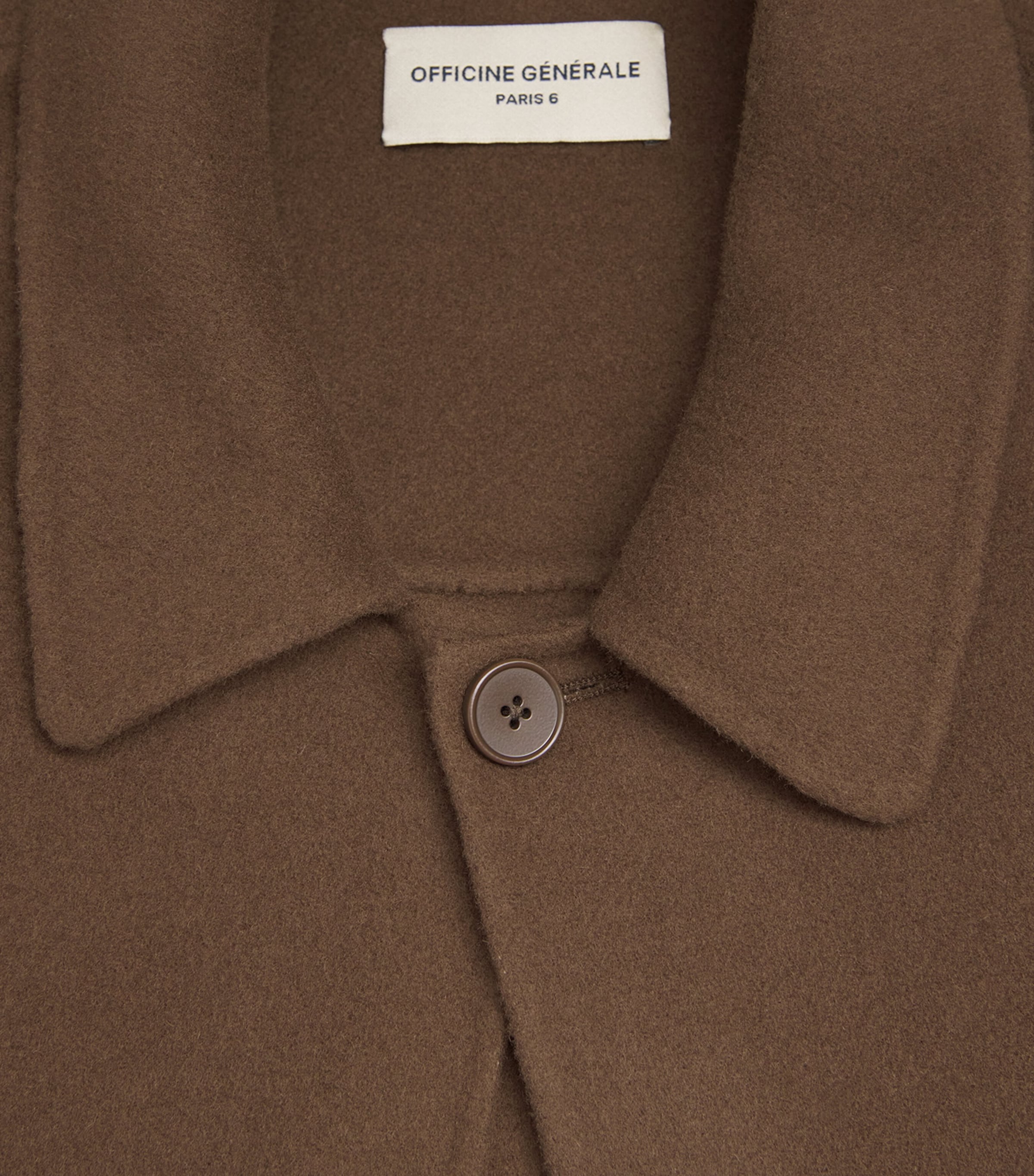 Officine Generale Brown Wool Overshirt - iced coffee / M