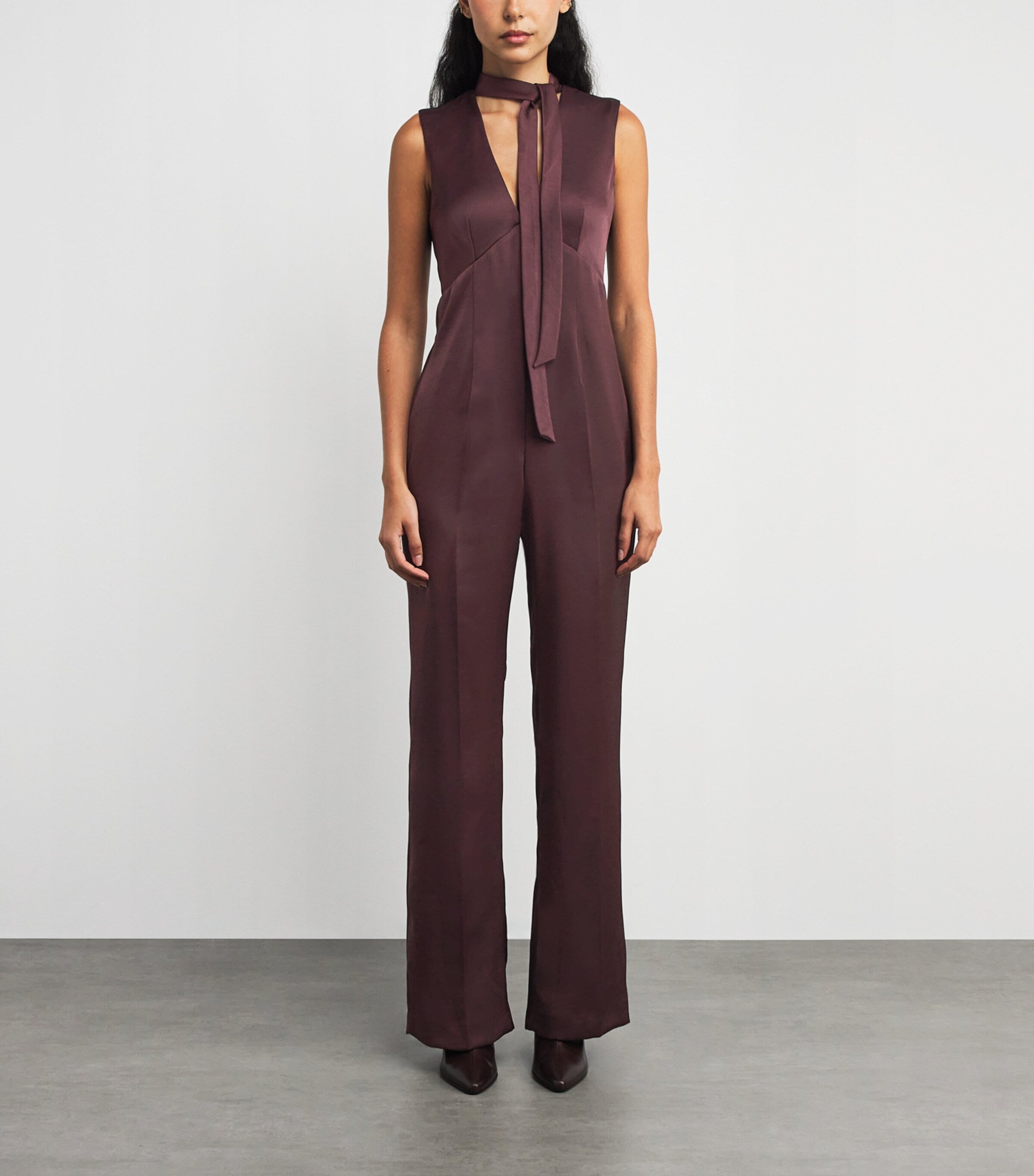 Purple Satin Jumpsuit - aubergine / 34 FR