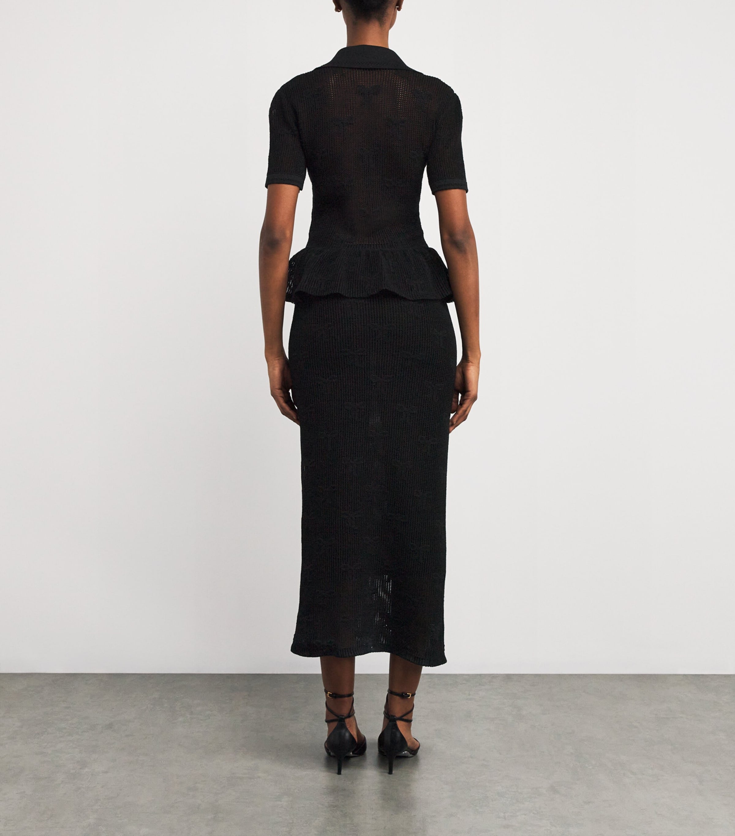 Self-Portrait Black Crochet Peplum Midi Dress - black / XS