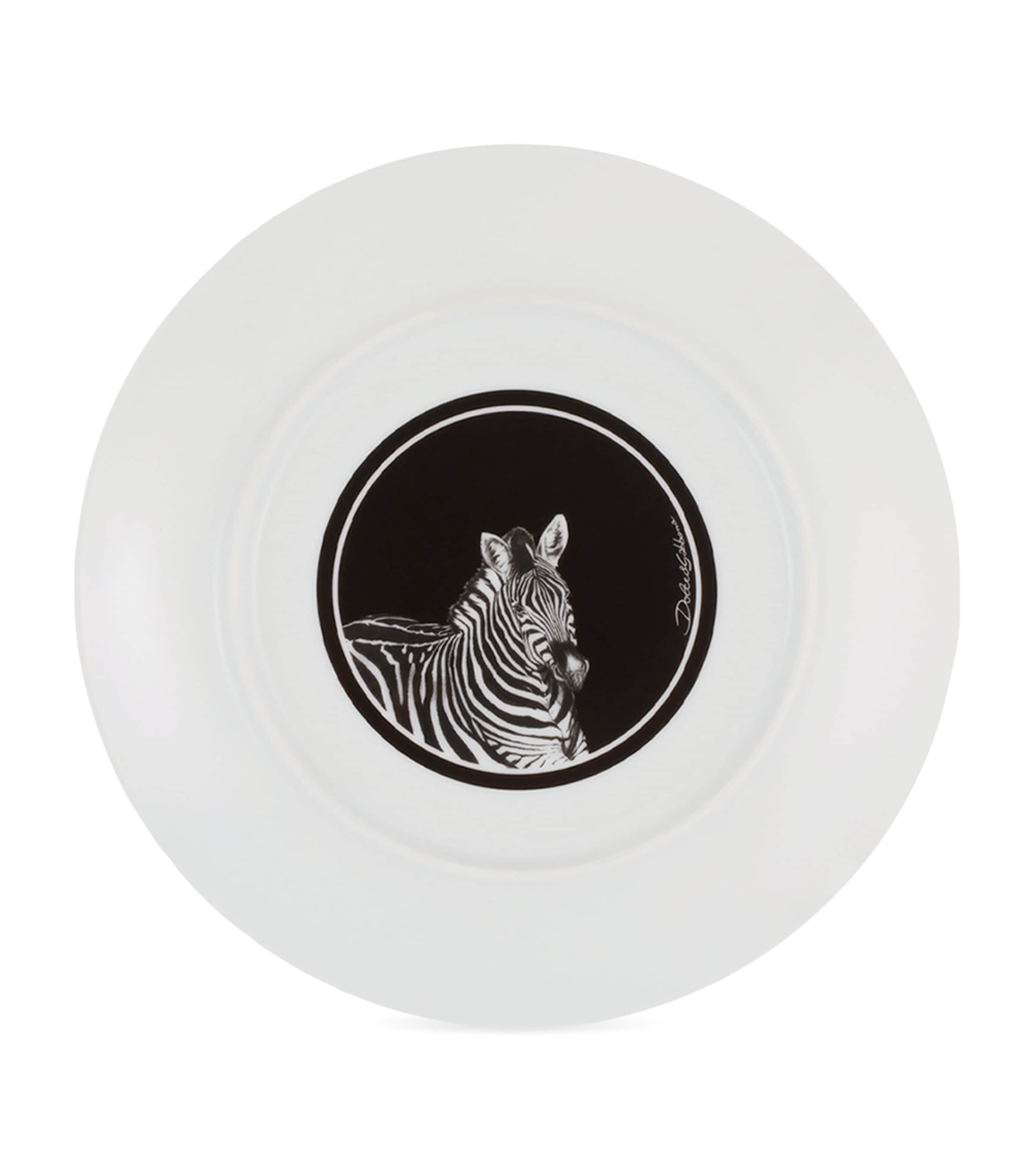 Dolce & Gabbana extends its range of signature animal prints to its homeware collection this season, updating your table spread with an array of fine Italian-made pieces in a scratch-resistant finish. This glossy set of two bread plates features an unusual striped duo, with the two zebras proving to be exceptionally charming dining companions.