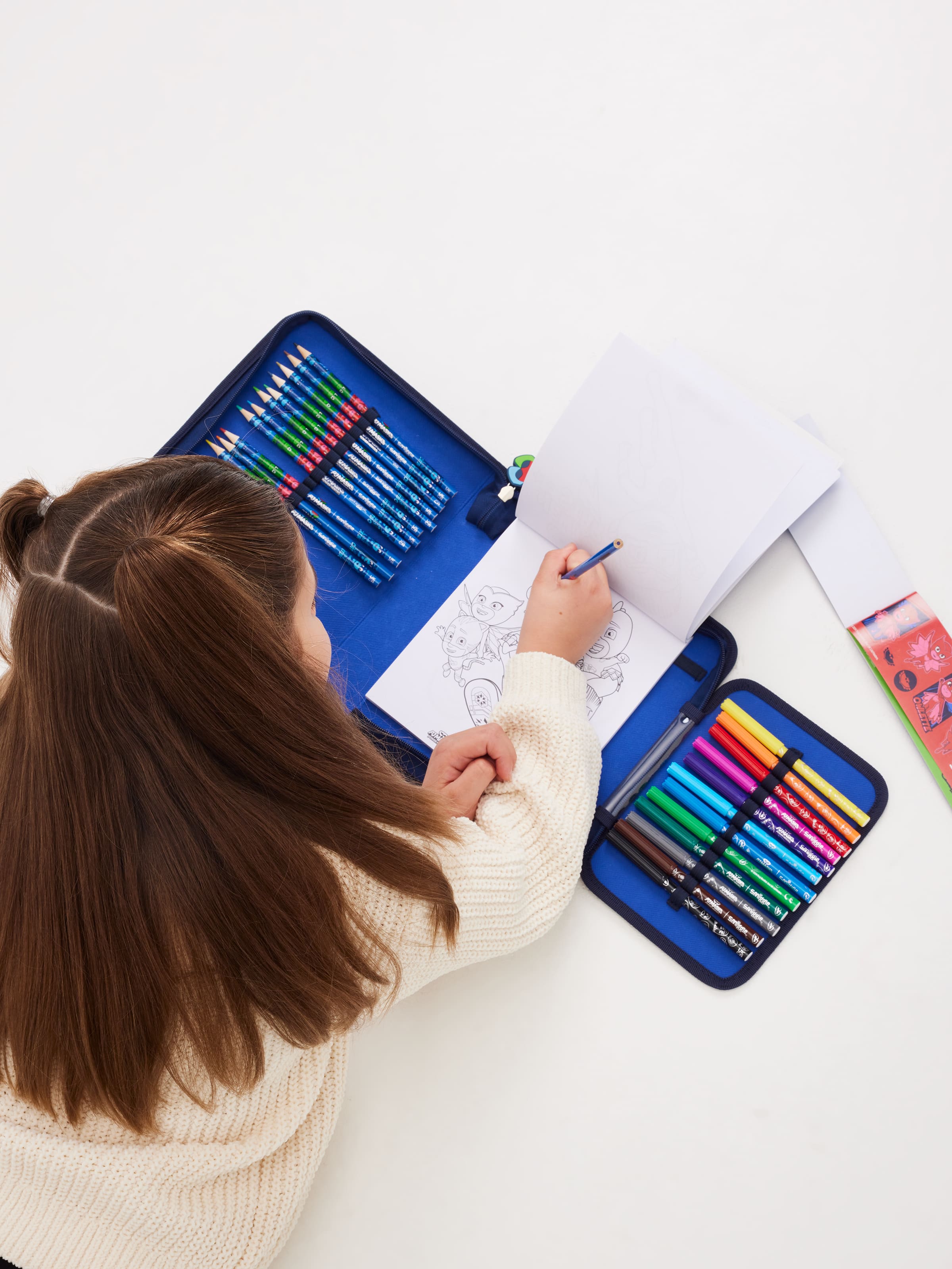Night heroes come together! Embark on adventures with our special PJ Masks Power Heroes collection. Join Catboy and the Power Heroes as they defeat villains and save the city! Create amazing artworks with our PJ Masks Power Heroes Stationery Gift Pack! This all-in-one stationery pack includes 12 rainbow pencils, 12 colored pencils, a sticker book, and an activity pack all in a single zippered case. The activity notebook, perfect to take anywhere when your creativity kicks in, contains 20 coloring pages filled with special PJ Masks Power Heroes designs. Zippered Pencil Case 12 x Colored Pencils 12 x Colored Pencils 3 x Sticker Sheets Coloring Pages Activity Notebook W 21cm x D 4.5cm x H 25cm