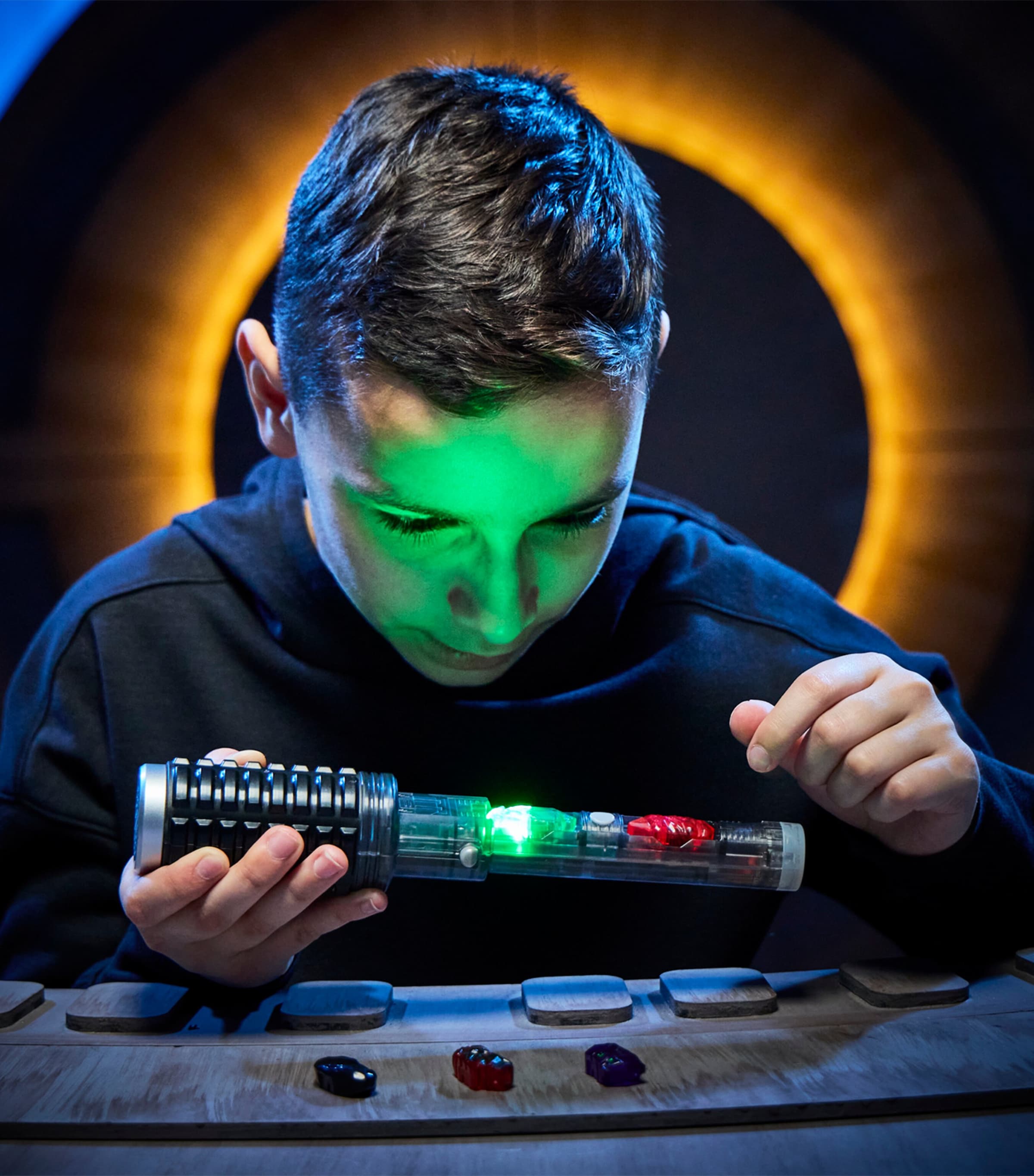 The Star Wars Power Crystal Lightsaber invites fans to forge their own destiny with colour, sound and light. With 10 interchangeable kyber crystals, an extendable blade and over 50 glowing combinations, this customisable Lightsaber transforms play into an epic Star Wars adventure, channelling heroes and villains alike through immersive design and cinematic effects.