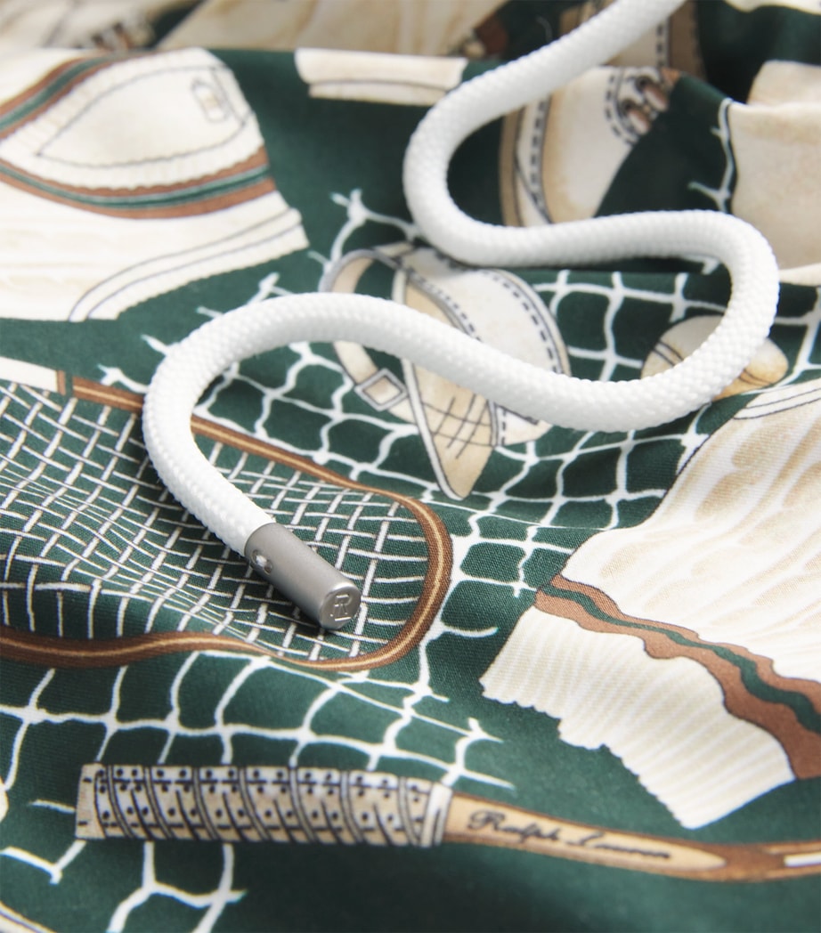 Reverence for sports codes are a recurring point of inspiration in the Ralph Lauren universe. The Amalfi swim shorts from the label’s Purple Collection take that ethos to heart by featuring an overall tennis print that will introduce a welcome dose of colour and pattern into your swimming uniform.