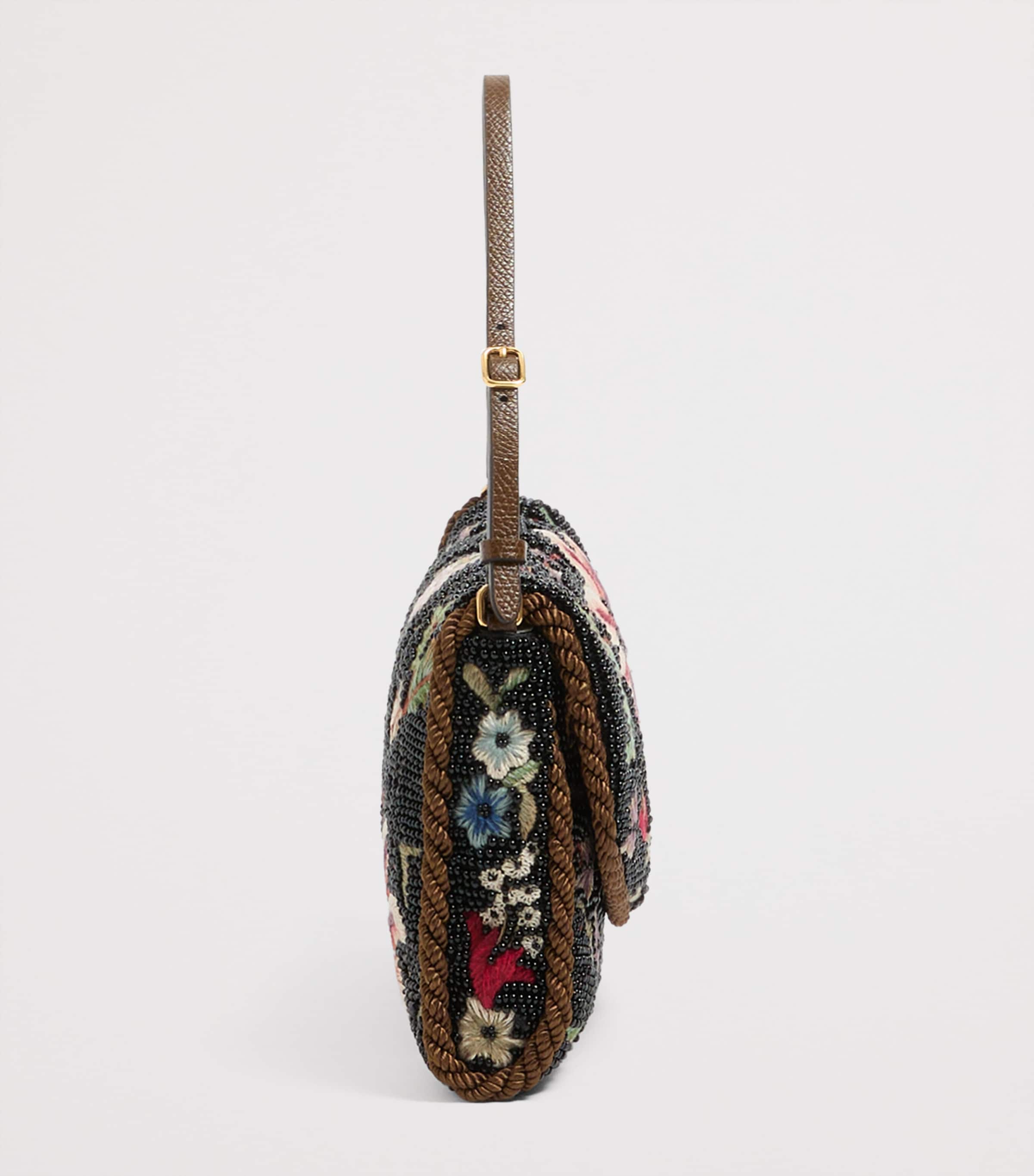 Being rooted in Roman grandeur, Valentino Garavani is particularly partial to a showcase of maximalism, and a shrewd one at that. The House revisits the understated frame of the Vain Soft clutch bag and embellishes it with beads to form an artful array of florals