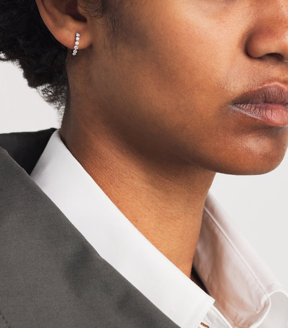 With a rich history of providing the finest luxury goods for over 200 years, Harrods presents its first-ever collection of fine jewellery. Part of this gem-laden range are these hoop earrings, which are made from 18-karat white gold and encrusted with a row of scintillating diamonds to bring a sparkle to your daily stack.