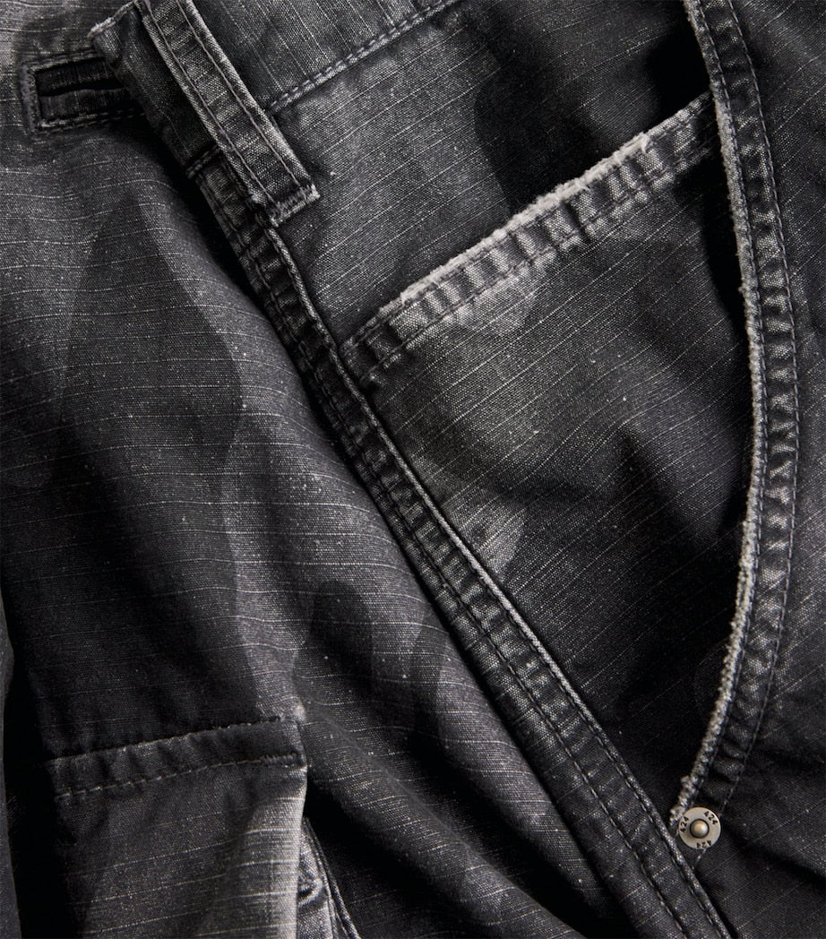 Los Angeles-based brand 424 is rooted in the city's unique street style, where luxury pieces are seamlessly worn alongside rugged, distressed vintage styles. Here, for example, it draws inspiration from the baggy, drawstring-fastened cargo trousers of the '90s, completing its rendition with cotton ripstop, gentle distressing and a camouflage print.