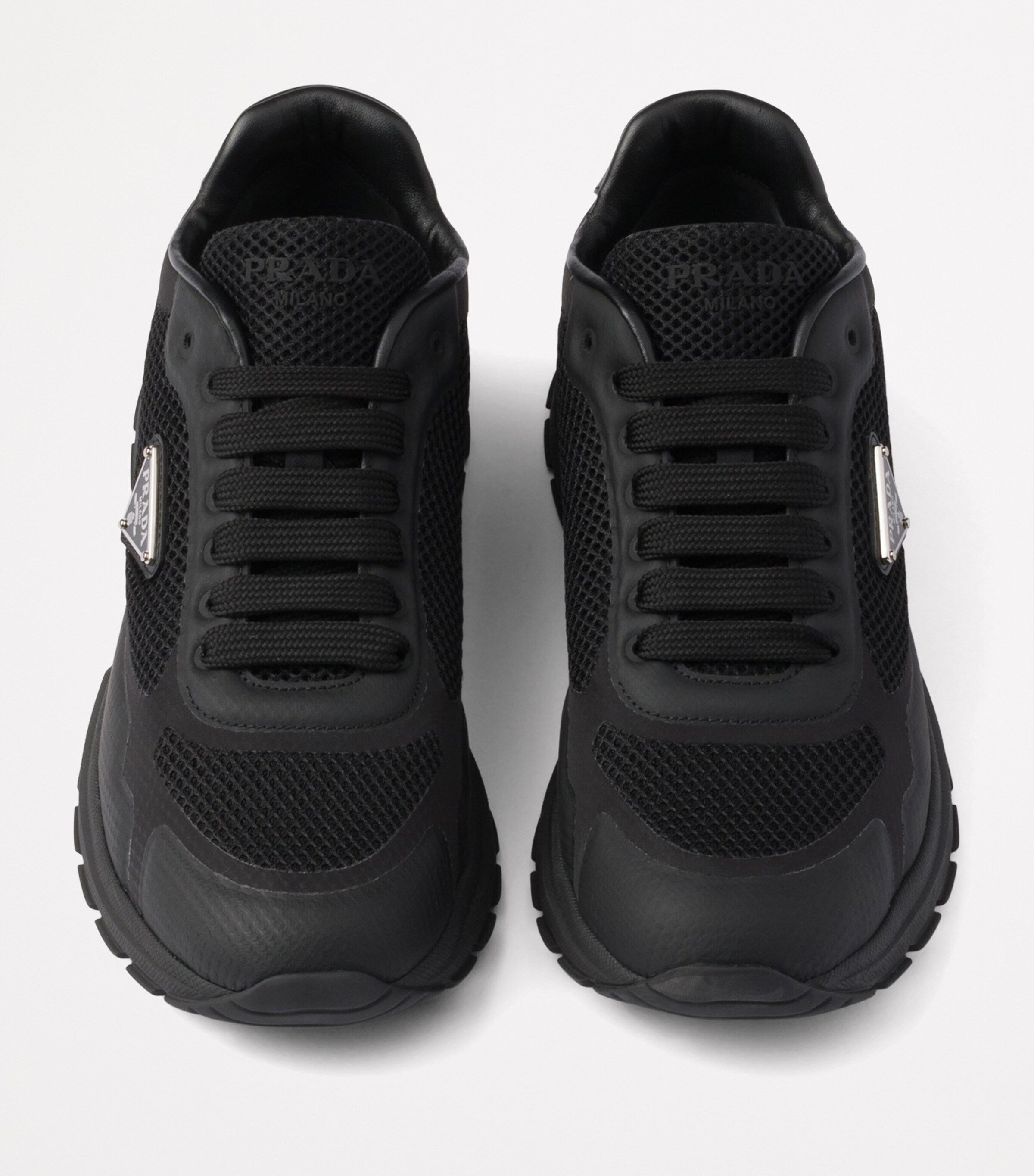 Inspired by silhouettes from the ‘90s, the Prada Prax 2.0 sneakers reinterpret a classic sporty style with contemporary lines and details. Made from fabric and mesh, the pair presents a versatile attitude accompanied by comfort ensured by the light rubber sole.