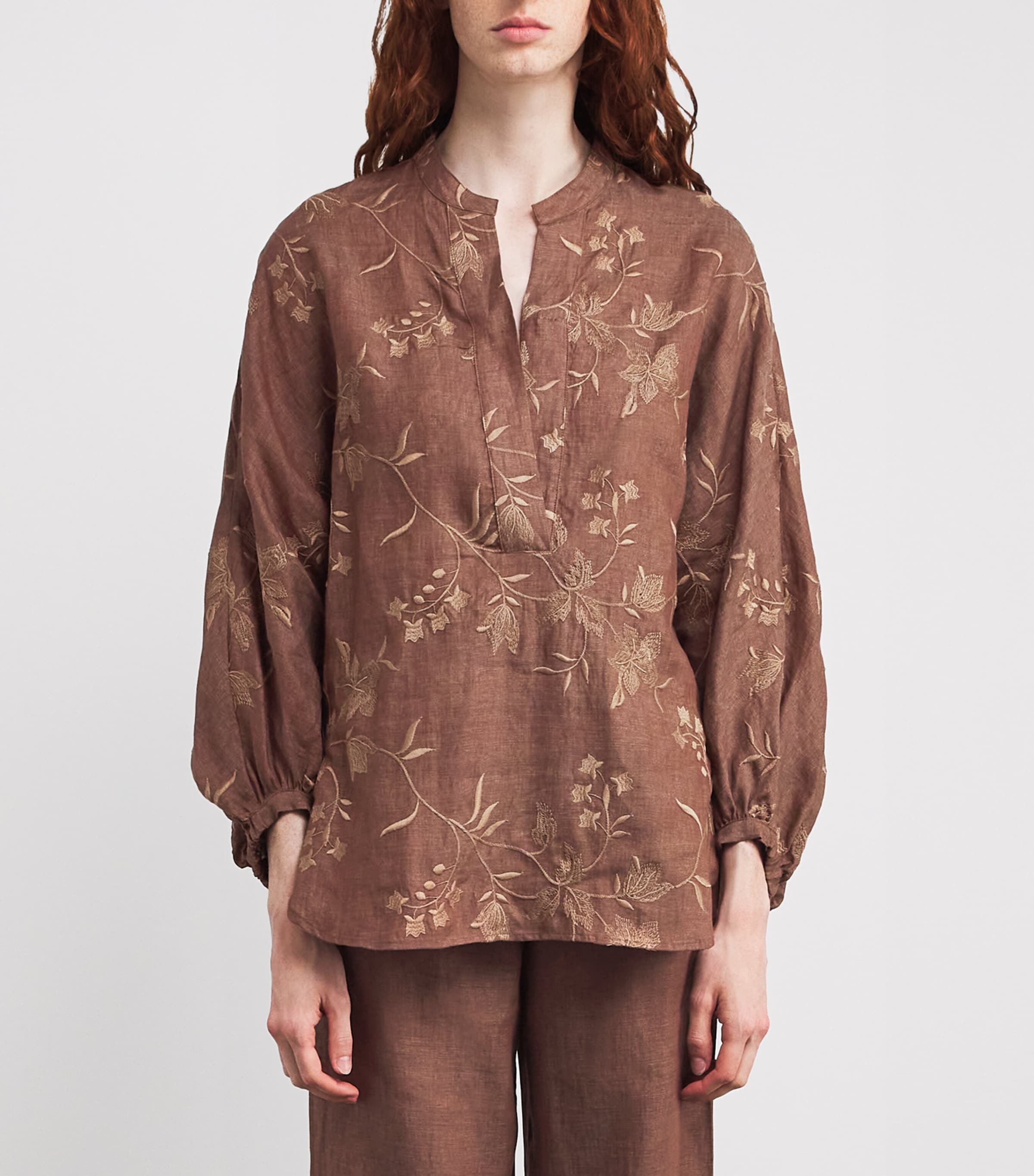 Eleventy Beige x Harrods Linen Floral-Embroidered Blouse - vicuna / 40 IT