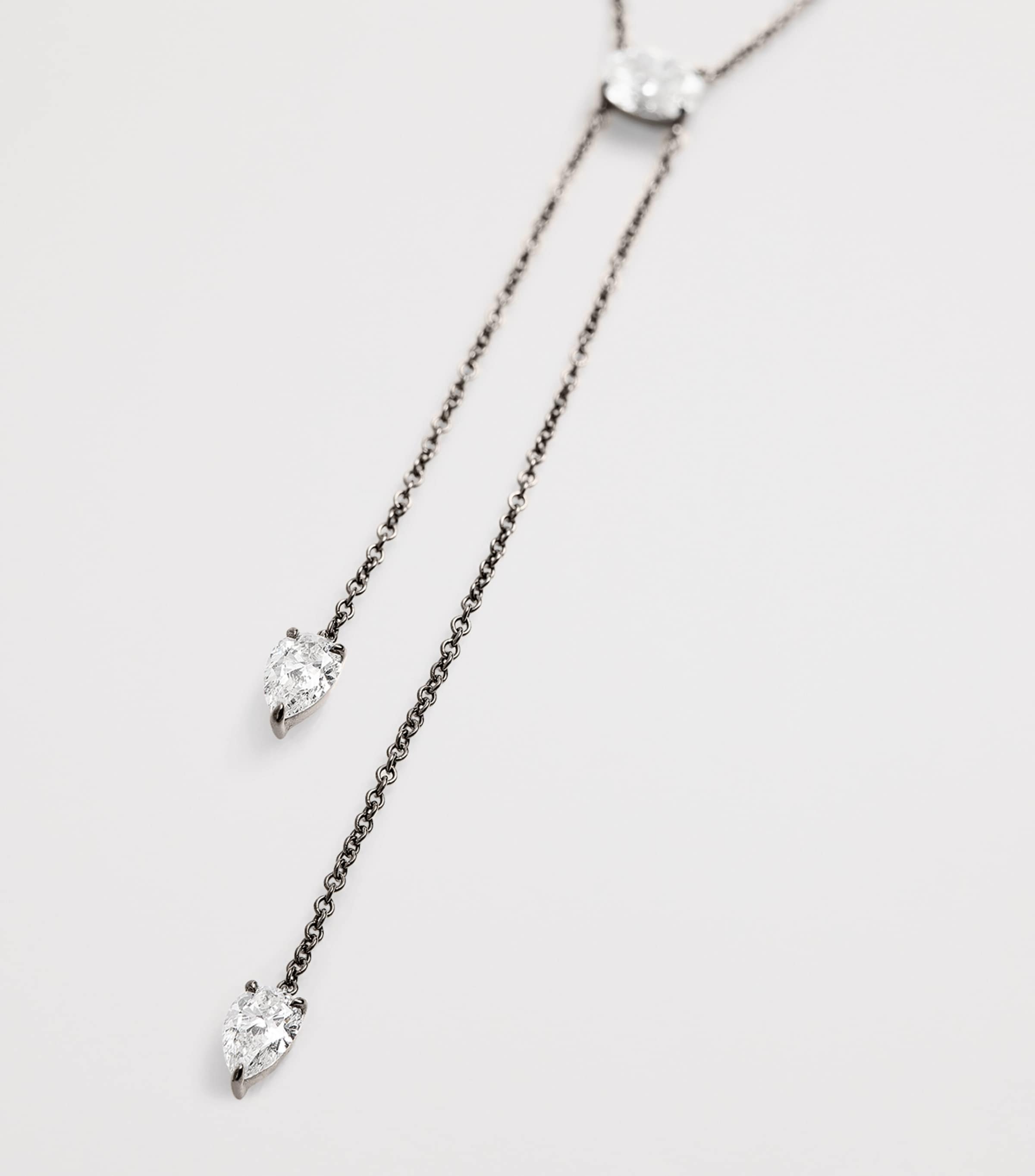 Cast in Eva Fehren's signature blackened 18-karat white gold, the Boa necklace snakes around the neck to create a truly showstopping design. Best framed by a plunging neckline, the piece is encrusted with three diamonds set on an articulated chain to replicate the sinuous movement of the reptile that inspired it.