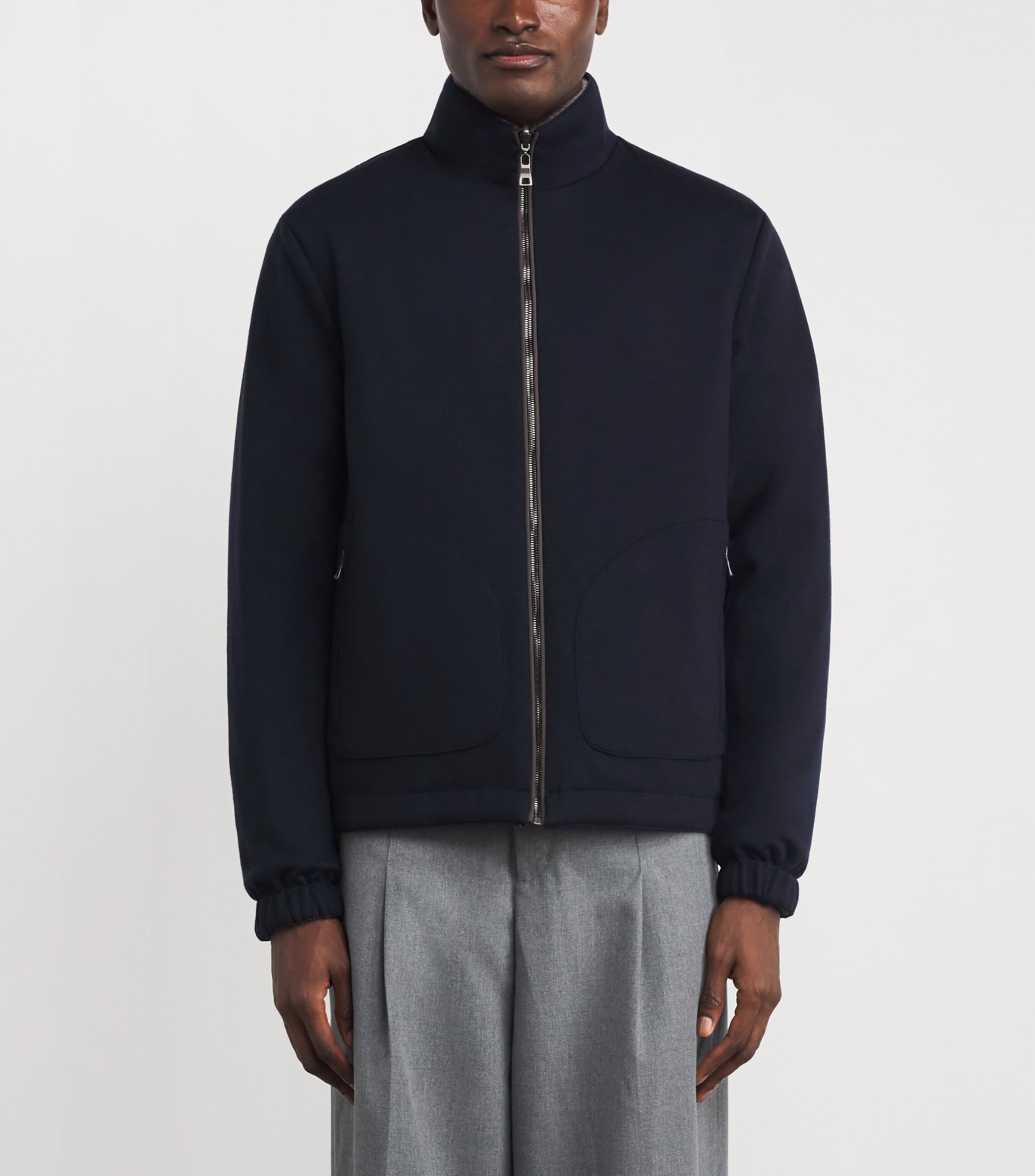Fioroni Cashmere Beige Virgin Wool Reversible Bomber Jacket