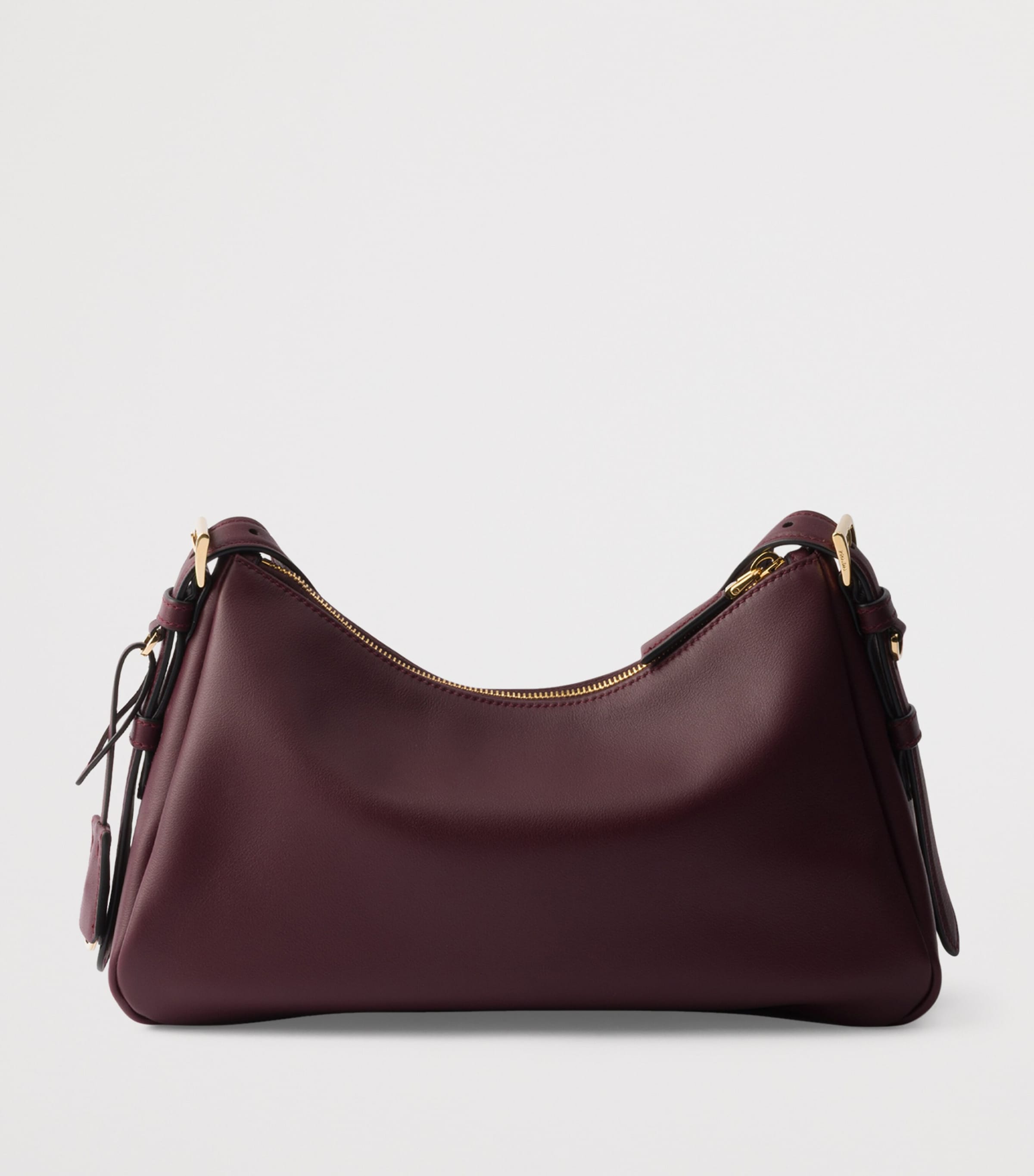 While Prada is revered for its classic ‘90s minimalism, the Italian brand maintains a steady hand on the pulse. Its new Aimée shoulder bag is made in Italy from supple calf leather, which lends its retro-inspired silhouette a certain softness and structure.