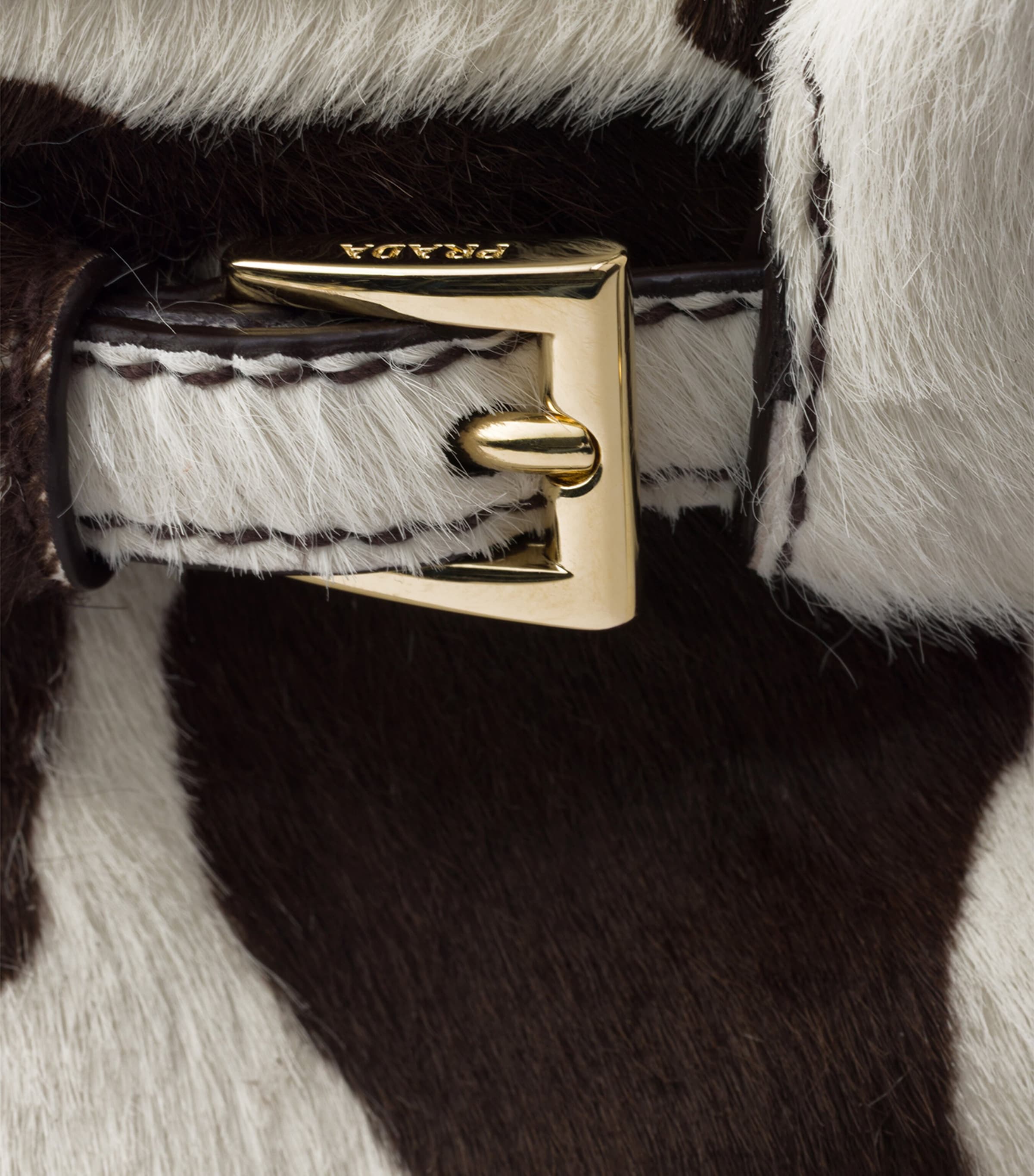 Inspired by the baguette styles of the 2000s, the Bonnie shoulder bag is an elegant and pragmatic design for everyday wear, boasting a series of detachable straps that allow you to flit between looks to suit the fashion-forward scene. Its mini silhouette is animated with a characterful calfskin cow print design and adorned by a signature Triangle moniker, which, undoubtedly, speaks for itself.