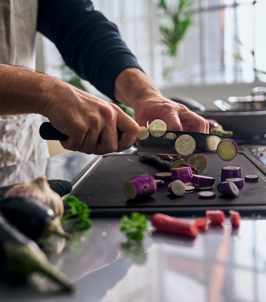 The ProCut Knife Collection brings German precision to everyday cooking. Crafted from stainless steel hardened to HRC 59, the blades maintain a fine edge through repeated use. An ergonomic, anti-slip handle with integrated thumb recess provides natural hand posture and balance, making each slice, chop or cut steady and efficient.