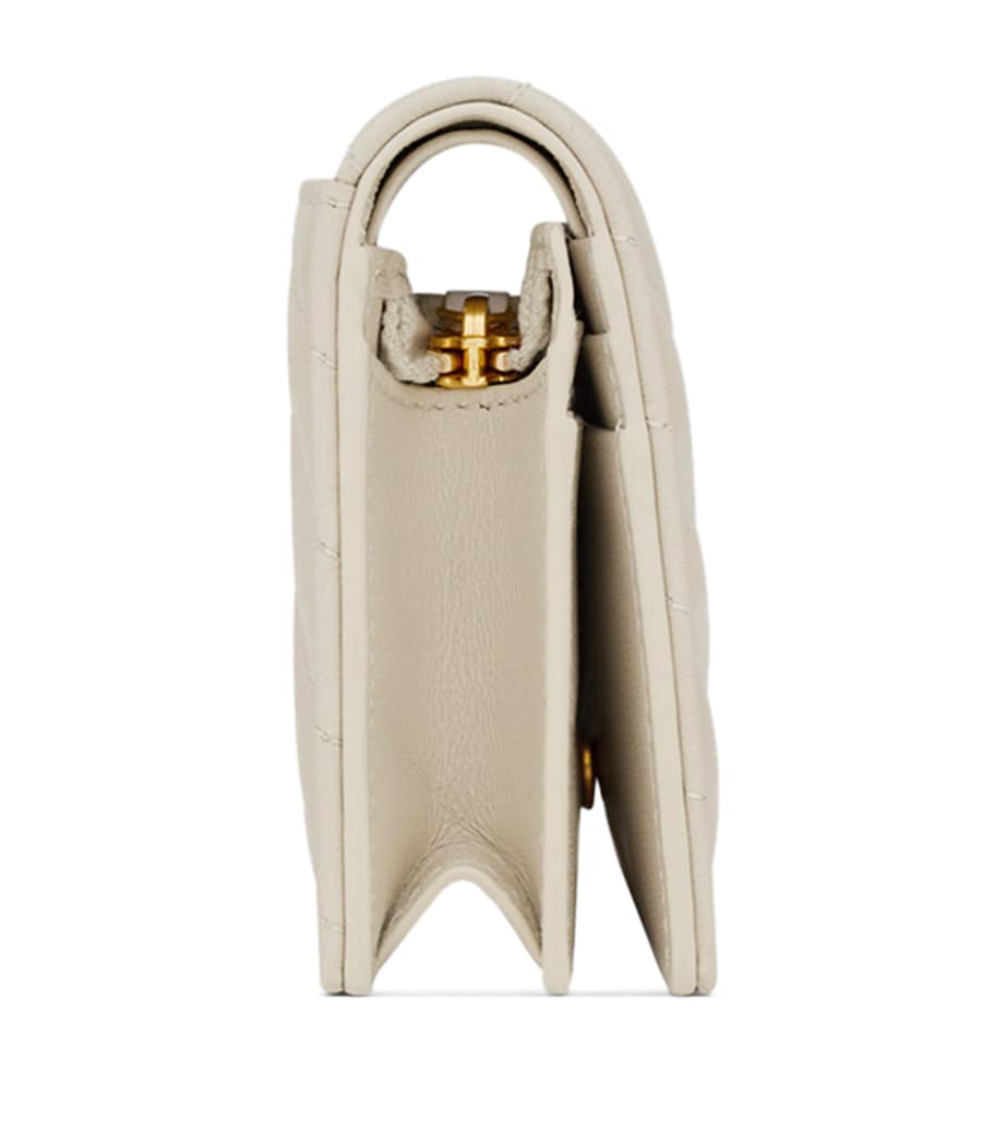 Presenting a classic silhouette in miniature proportions, this wallet from Saint Laurent lets you keep your monetary essentials close to hand. Italian-crafted from leather, it's fitted with interior card slots to the spacious interior and an external slip pocket. Punctuated by the instantly recognisable YSL monogram and exquisite matelassé stitching, it slots perfectly into your clutch bag for dusk-to-dawn endeavours.